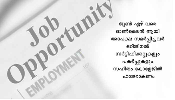 തിരുവനന്തപുരം: തലശ്ശേരി ഗവ.കോളേജിൽ കൊമേഴ്സ്, പൊളിറ്റിക്കൽ സയൻസ് (പാർട്ട് ടൈം), എംഎസ്‌സി കമ്പ്യൂട്ടർ സയൻസ്, മാത്തമാറ്റിക്സ് വിഷയങ്ങളിൽ ഗസ്റ്റ് ലക്ചറർ ഇന്റർവ്യൂ കോളേജിൽ നടത്തും. ജൂൺ ഏഴ് വരെ ഓൺലൈൻ ആയി അപേക്ഷ സമർപ്പിച്ചവർ ഒറിജിനൽ സർട്ടിഫിക്കറ്റുകളും പകർപ്പുകളും സഹിതം സമയക്രമം പാലിച്ച് നേരിട്ട് കോളേജിൽ ഹാജരാകണം. കൊമേഴ്സ് 23 ന് രാവിലെ 10 മണി, പൊളിറ്റിക്കൽ സയൻസ് – 23 ന് രാവിലെ 11.30, എംഎസ്‌സി കമ്പ്യൂട്ടർ സയൻസ് 29 ന് രാവിലെ 10, മാത്തമാറ്റിക്സ് 29ന് രാവിലെ 11.30. സർട്ടിഫിക്കറ്റുകളുടെ ആവശ്യത്തിനുള്ള പകർപ്പുകൾ കൈയിൽ കരുതണം. ഫോൺ: 0490-2966800, 9846175368, 9961261812.