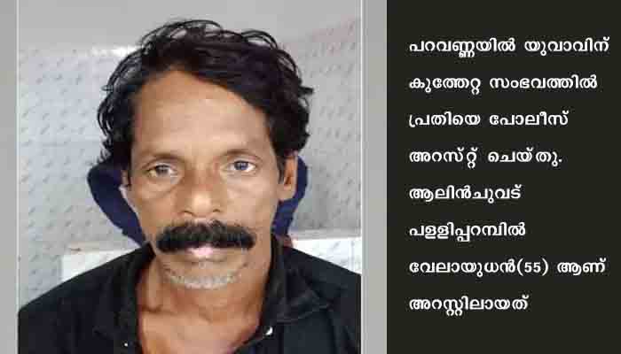 തിരൂര്: പറവണ്ണയില് യുവാവിന് കുത്തേറ്റ സംഭവത്തില് പ്രതിയെ പോലീസ് അറസ്റ്റ് ചെയ്തു. ആലിന്ചുവട് പളളിപ്പറമ്പില് വേലായുധന്(55) ആണ് അറസ്റ്റിലായത്. 2021 ജൂണ് 20 ഞായറാഴ്ച രാത്രി എട്ടുമണിയോടെയാണ് സംഭവം. തിരൂര് ആലിന്ചുവട് പളളിപറമ്പില് സുരേഷ് ബാബുവിനാണ് കുത്തേറ്റത്. ക്വാറന്റയിനില് കഴിയാതെ പുറത്തിറങ്ങി നടന്ന വേലായുധനെ ബോധവല്ക്കരിച്ചതിന്റെ പേരിലാണ് ബാബുവിനെ കുത്തി പരിക്കേല്പ്പിച്ചത്.