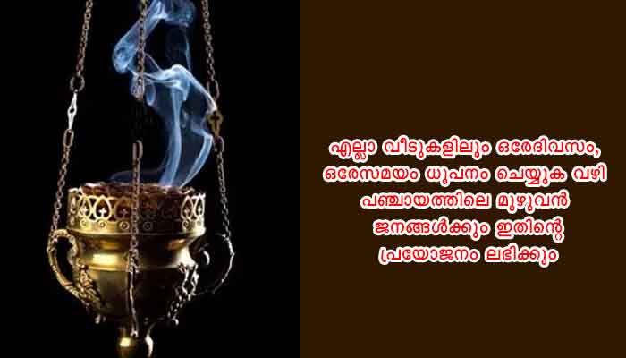 ആലപ്പുഴ : പുന്നപ്ര വടക്ക് ഗ്രാമപഞ്ചായത്തിന്റെയും ആയുർവ്വേദ ഡിസ്പെൻസറിയുടെയും നേതൃത്വത്തിൽ പഞ്ചായത്തിലെ മുഴുവൻ വീടുകളിലും ഔഷധചൂർണം ധൂപനം ചെയ്തു. ധൂപസന്ധ്യ ഔഷധദ്രവ്യങ്ങൾ തീക്കനലിലിട്ട് പുകച്ച് അന്തരീക്ഷം ശുദ്ധീകരിക്കുന്ന പ്രക്രിയയാണ് ധൂപനം. പുരാതനകാലം മുതൽ തന്നെ അനുവർത്തിച്ചു വരുന്ന ഒരു ദിനചര്യയാണിത്. ധൂപനത്തിനായി ഉപയോഗിക്കാവുന്ന ശ്രേഷ്ഠമായ യോഗമാണ് അപരാജിത ധൂപചൂർണ്ണം.