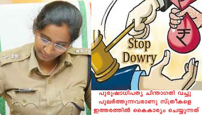 പുരോഗമന കാലഘട്ടത്തിലും സ്ത്രീകള് ഭര്തൃ ഗൃഹങ്ങളില് സ്ത്രീധനത്തിന്റെ പേരില് അതിക്രമങ്ങള്ക്ക് ഇരകളാക്കപ്പെടുന്നതു തികച്ചും അപരിഷ്കൃതമാണ്. ഇത്തരം ക്രൂരതകള് തടയുകയും കുറ്റവാളികള്ക്കെതിരെ കര്ക്കശമായ നിയമനടപടികള് സ്വീകരിക്കുകയും ചെയ്യേണ്ടത് അത്യന്താപേക്ഷിതമാണ്. പുരുഷാധിപത്യ ചിന്താഗതി വച്ചു പുലര്ത്തുന്നവരാണു സ്ത്രീകളെ ഇത്തരത്തില് കൈകാര്യം ചെയ്യുന്നത്. ഇവരെ നിലയ്ക്കുനിര്ത്തുന്ന തരത്തില് പോലീസ് നടപടിയുണ്ടാകും. പെണ്ണിനെ പണവും സമ്പത്തും നേടാനുള്ള ഉപകരണമായി മാത്രം കാണുന്നവര് സമൂഹത്തെ പിന്നോട്ടടിക്കുന്നവരാണെന്നും സ്ത്രീകള്ക്കെതിരെ അതിക്രമം കാട്ടുന്നവരെ നിയമനടപടികള്ക്കു വിധേയരാക്കുമെന്നും സ്ത്രീകള്ക്ക് സുരക്ഷ ഉറപ്പാക്കുമെന്നും ജില്ലാ പോലീസ് മേധാവി ചൂണ്ടിക്കാട്ടി.