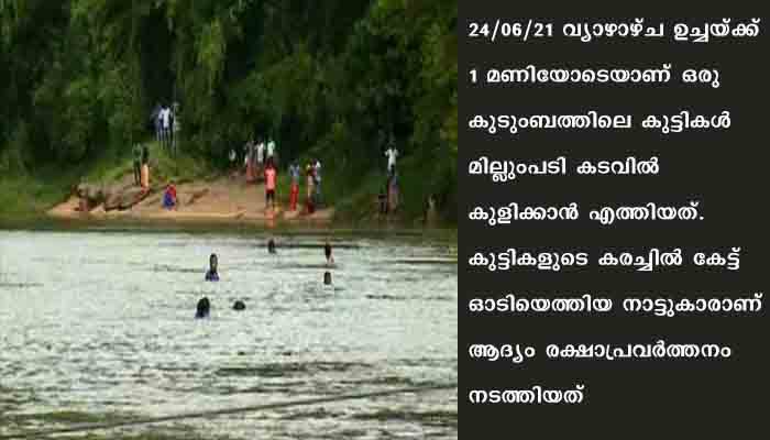 24/06/21 വ്യാഴാഴ്ച ഉച്ചയ്ക്ക് 1 മണിയോടെയാണ് ഒരു കുടുംബത്തിലെ കുട്ടികള് മില്ലുംപടി കടവില് കുളിക്കാന് എത്തിയത്. കുട്ടികളുടെ കരച്ചില് കേട്ട് ഓടിയെത്തിയ നാട്ടുകാരാണ് ആദ്യം രക്ഷാപ്രവര്ത്തനം നടത്തിയത്. ഒഴുക്കില്പ്പെട്ട് വരുന്നതിനിടെയാണ് രണ്ട് കുട്ടികളെ പ്രദേശവാസി കരീം കരക്കെത്തിച്ചത്.