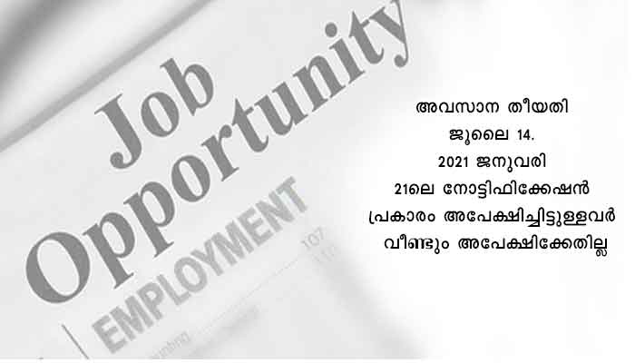 കാസർഗോഡ്: പത്തനംതിട്ട ജില്ലയിലെ കോന്നിയിൽ പ്രവർത്തിക്കുന്ന കൗൺസിൽ ഫോർ ഫുഡ് റിസർച്ച് ആന്റ് ഡെവലപ്മെന്റ് (സി.എഫ്.ആർ.ഡി) എന്ന സ്ഥാപനത്തിന്റെ കീഴിലുള്ള ഫുഡ് ക്വാളിറ്റി മോണിട്ടറിംഗ് ലബോറട്ടറിയുടെ കെമിക്കൽ വിഭാഗത്തിലേക്ക് സീനിയർ അനലിസ്റ്റിനെ 25000 രൂപ പ്രതിമാസ വേതനത്തോടെ കരാർ അടിസ്ഥാനത്തിൽ നിയമിക്കുന്നു. യോഗ്യത: 50% മാർക്കിൽ കുറയാത്ത മാർക്കോടെ കെമിസ്ട്രി/ ബയോകെമിസ്ട്രി വിഷയത്തിൽ ബിരുദാനന്തര ബിരുദവും ഫുഡ് അനാലിസിസ് ലബോറട്ടറിയിൽ അനലിസ്റ്റായി മൂന്ന് വർഷത്തിൽ കുറയാത്ത പ്രവൃത്തിപരിചയവും. എൻ.എ.ബി.എൽ അക്രഡിറ്റേഷനുള്ള ലാബിലെ പ്രവൃത്തിപരിചയം അഭികാമ്യം. അപേക്ഷ സ്വീകരിക്കുന്ന അവസാന തീയതി ജൂലൈ 14. 2021 ജനുവരി 21ലെ നോട്ടിഫിക്കേഷൻ പ്രകാരം അപേക്ഷിച്ചിട്ടുള്ളവർ വീണ്ടും അപേക്ഷിക്കേണ്ടതില്ല. വിശദവിവരങ്ങൾക്കും അപേക്ഷാഫോമിനും www.supplycokerala.com സന്ദർശിക്കുക.