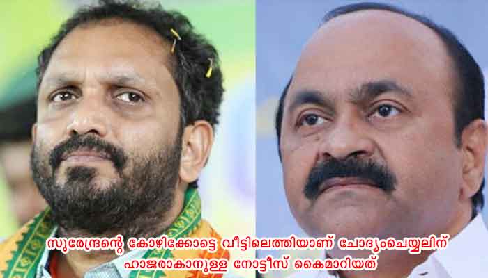 ചോദ്യം ചെയ്യലിന് ഹാജരാകാന് ആവശ്യപ്പെട്ട് സുരേന്ദ്രന് നോട്ടീസ് അയച്ചത് വെളളിയാഴ്ചയാണ്. ചൊവ്വാഴ്ച രാവിലെ 10 മണിക്ക് തൃശൂര് പൊലീസ് ക്ലബില് ഹാജരാകാനാണ് നോട്ടീസ്. സുരേന്ദ്രന്റെ കോഴിക്കോട്ടെ വീട്ടിലെത്തിയാണ് ചോദ്യംചെയ്യലിന് ഹാജരാകാനുള്ള നോട്ടീസ് കൈമാറിയത്. പണത്തിന്റെ ഉറവിടം, എങ്ങോട്ടാണ് കൊണ്ടു പോയത് തുടങ്ങിയ കാര്യങ്ങള് അറിയാന് വേണ്ടിയാണ് സുരേന്ദ്രനെ ചോദ്യം ചെയ്യുന്നത്. ധര്മരാജനുമായുള്ള ബന്ധമാണ് കെ സുരേന്ദ്രന് അന്വേഷണസംഘം മുമ്പാകെ വിശദീകരിക്കേണ്ടി വരിക.