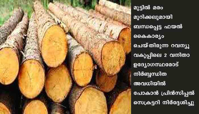 തിരുവനന്തപുരം : മുട്ടില് മരം മുറിക്കലുമായി ബന്ധപ്പെട്ട ഫയല് കൈകാര്യം ചെയ്തിരുന്ന റവന്യൂ വകുപ്പിലെ രണ്ട് വനിതാ ഉദ്യോഗസ്ഥരോട് നിര്ബ്ബന്ധിത അവധിയില് പോകാന് പ്രിന്സിപ്പല് സെക്രട്ടറി നിര്ദ്ദേശിച്ചു. റവന്യൂ വിഭാഗത്തിലെ ജോയിന്റ് സെക്രട്ടറിയോടും അണ്ടര് സെക്രട്ടറിയോടുമാണ് അവധിയില് പോകാന് നിര്ദ്ദേശിച്ചിരിക്കുന്നത്. . മുട്ടില് മരംമുറിയുമായി ബന്ധപ്പെട്ട നോട്ട്ഫയലിന്റെയും കറന്റ് ഫയലിന്റെയും രേഖകള് കഴിഞ്ഞ ദിവസം പുറത്തു വന്നിരുന്നു.