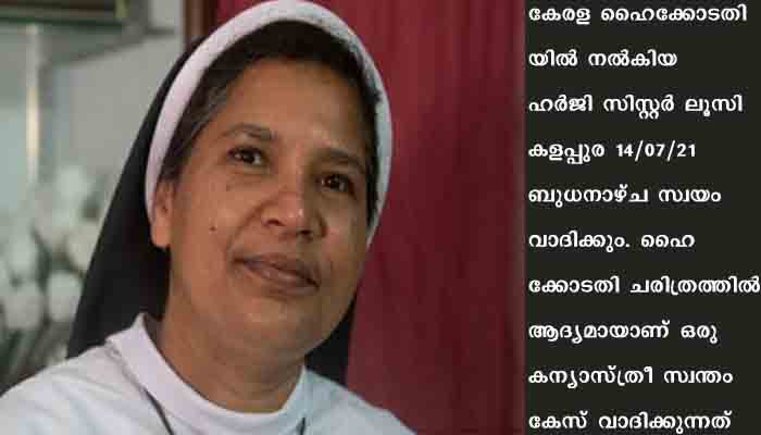 കേരള ഹൈക്കോടതിയില്‍ നല്‍കിയ ഹര്‍ജി സിസ്റ്റര്‍ ലൂസി കളപ്പുര സ്വയം വാദിക്കും