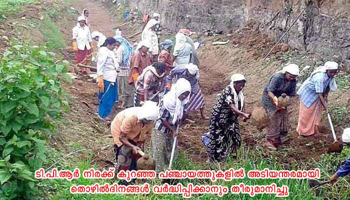 ടി.പി.ആര് നിരക്ക് കുറഞ്ഞ പഞ്ചായത്തുകളില് അടിയന്തരമായി തൊഴില്ദിനങ്ങള് വര്ദ്ധിപ്പിക്കാനും തീരുമാനിച്ചു. കിണര് റീചാര്ജിങ്, മഴക്കുഴി നിര്മ്മാണം എന്നിവയും തൊഴിലുറപ്പ് പദ്ധതിയുടെ ഭാഗമാക്കണം എന്ന് കെ. സോമപ്രസാദ് എം.പി നിര്ദ്ദേശിച്ചു. ഹരിതകേരളം മിഷനുമായി ചേര്ന്നുകൊണ്ട് വരള്ച്ച ബാധിത പ്രദേശങ്ങളുടെ കണക്കെടുപ്പ് നടത്തി തൊഴിലുറപ്പ് പദ്ധതിയിലേക്ക് വ്യാപിപ്പിക്കാനും നിര്ദ്ദേശമുണ്ട്. അംഗന്വാടികളുടെയും ഗ്രാമീണ റോഡുകളുടെയും നിര്മ്മാണം വേഗത്തില് പൂര്ത്തീകരിക്കാനുള്ള അടിയന്തര ശ്രദ്ധ ഉദ്യോഗസ്ഥരുടെ ഭാഗത്തുനിന്നും ഉണ്ടാകണമെന്ന് എ.എം. ആരിഫ് എം.പി പറഞ്ഞു. മൊബൈല് ഫോണ് റേഞ്ച് ലഭ്യമല്ലാത്ത കിഴക്കന് മലയോര മേഖലയിലെ 14 കോളനികളില് ടവര് സ്ഥാപിക്കുന്നതിനുള്ള സഹായം ട്രൈബല് ഡെവലപ്മെന്റ് ഓഫീസര് അഭ്യര്ത്ഥിച്ചു.