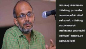 കൊച്ചി: അഡ്വ.എ ജയശങ്കറെ സിപിഐ പ്രാഥമിക അംഗത്വത്തില് നിന്ന് ഒഴിവാക്കി. സിപിഐ ഹൈക്കോടതി അഭിഭാഷക ബ്രാഞ്ചില് നിന്നാണ് ജയശങ്കറെ ഒഴിവാക്കിയത്. ഇത്തവണ അംഗത്വം പുതുക്കി നല്കേണ്ടെന്ന് തീരുമാനിക്കുകയായിരുന്നു. സോഷ്യല്മീഡിയയിലും ചാനലുകളിലും സിപിഐയെയും എല്ഡിഎഫിനേയും മോശമാക്കുന്ന രീതിയില് അഭിപ്രായ പ്രകടനം നടത്തിയതിനാണ് നടപടി.