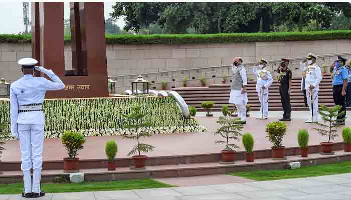 കാർഗിൽ വിജയ് ദിവസിൽ പ്രതിരോധ മന്ത്രി ശ്രീ രാജ്നാഥ് സിംഗ് രക്ത സാക്ഷികളായ വീരയോദ്ധാക്കൾക്ക് ദേശീയ യുദ്ധസ്മാരകത്തിൽ ആദരാഞ്ജലി അർപ്പിച്ചു