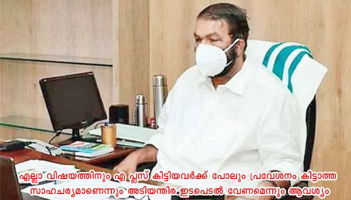 പ്ലസ് വൺ പ്രവേശനത്തിലെ ആശങ്കകൾ ഉന്നയിച്ചായിരുന്നു പ്രതിപക്ഷത്തിന്റെ അടിയന്തിരപ്രമേയ നോട്ടീസ്. ഒരു ലക്ഷത്തിലേറെ പേർക്ക് ഇത്തവണ എസ്എസ്എൽസിക്ക് എ പ്ലസ് കിട്ടി. സർക്കാർ പ്രഖ്യാപിച്ച് മാർജിനൽ സീറ്റ് വർദ്ധനവിന് ശേഷവും മലബാറിൽ സീറ്റുകൾ കിട്ടാത്ത സ്ഥിതിയാണെന്ന് പ്രതിപക്ഷം ചൂണ്ടിക്കാട്ടി. എല്ലാ വിഷയത്തിനും എ പ്ലസ് കിട്ടിയവർക്ക് പോലും പ്രവേശനം കിട്ടാത്ത സാഹചര്യമാണെന്നും അടിയന്തിര ഇടപെടൽ വേണമെന്നും ആവശ്യം. എന്നാൽ സംസ്ഥാനത്താകെ കുറവ് 2,6481 സീറ്റെന്ന് മന്ത്രിയുടെ മറുപടി. മലബാറിൽ 20 ശതമാനവും തെക്ക് 10 ശതമാനവും ഇപ്പോൾ പ്രഖ്യാപിച്ച സീറ്റ് വർദ്ധനവിന് ശേഷവും തികയില്ലെങ്കിലും പ്രശ്നം തീർക്കുമെന്ന് വിദ്യാഭ്യാസമന്ത്രിയുടെ ഉറപ്പ്.