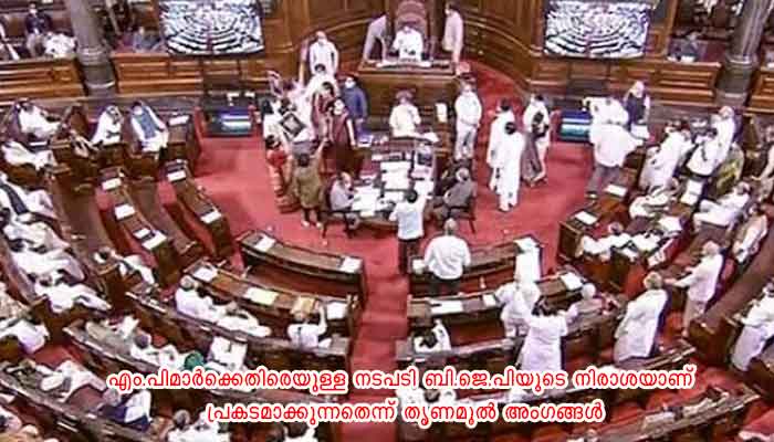 എം.പിമാര്ക്കെതിരെയുള്ള നടപടി ബി.ജെ.പിയുടെ നിരാശയാണ് പ്രകടമാക്കുന്നതെന്ന് തൃണമൂല് അംഗങ്ങള് പ്രതികരിച്ചു.