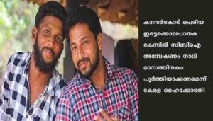 കൊച്ചി: കാസർകോട് പെരിയ ഇരട്ടക്കൊലപാതക കേസിൽ സിബിഐ അന്വേഷണം നാല് മാസത്തിനകം പൂർത്തിയാക്കണമെന്ന് കേരള ഹൈക്കോടതി. പതിനൊന്നാം പ്രതി പ്രദീപിന്റെ ജാമ്യാപേക്ഷ തള്ളിക്കൊണ്ടുള്ള ഉത്തരവിലാണ് കോടതിയുടെ നിർദേശം. രണ്ടു വർഷത്തിലധികമായി പ്രതികൾ ജയിലിൽ കഴിയുകയാണെന്നും കോടതി പറഞ്ഞു.