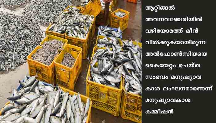 തിരുവനന്തപുരം: ആറ്റിങ്ങൽ അവനവഞ്ചേരിയിൽ വഴിയോരത്ത് മീൻ വിൽക്കുകയായിരുന്ന അൽഫോൺസിയയെ കൈയേറ്റം ചെയ്ത സംഭവം മനുഷ്യാവകാശ ലംഘനമാണെന്ന് മനുഷ്യാവകാശ കമ്മീഷൻ. സംഭവത്തെ കുറിച്ച് സത്യസന്ധമായ അന്വേഷണം നടത്തി സെപ്റ്റംബർ 10 നകം ആറ്റിങ്ങൽ നഗരസഭാ സെക്രട്ടറി റിപ്പോർട്ട് ഫയൽ ചെയ്യണമെന്ന് കമ്മീഷൻ അധ്യക്ഷൻ ജസ്റ്റിസ് ആന്റണി ഡൊമിനിക് ഉത്തരവിട്ടു. കേസ് 2021 സെപ്റ്റംബർ 15 ന് പരിഗണിക്കും.