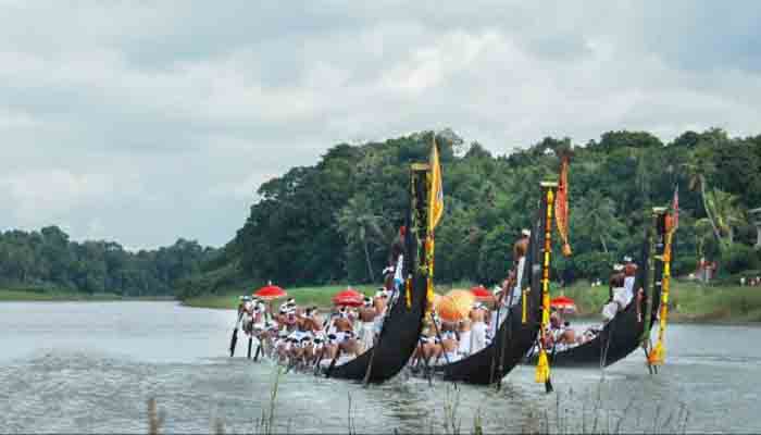 പത്തനംതിട്ട : കോവിഡ് മഹാമാരിയുടെ രണ്ടാം വര്ഷത്തില് നടന്ന ആറന്മുള ഉത്രട്ടാതി ജലമേളയില് മൂന്ന് പള്ളിയോടങ്ങള് മുഴക്കിയ വഞ്ചിപ്പാട്ടിന്റെ ആരവം പ്രതീക്ഷയുടെയും ആശ്വാസത്തിന്റെയും ആഘോഷ കാഴ്ചയായി മാറി. പമ്പയുടെ വിരിമാറില് ആറന്മുള പാര്ഥസാരഥി ക്ഷേത്രക്കടവില് എത്തിയ മാരാമണ്, കോഴഞ്ചേരി, കീഴ്വന്മഴി എന്നീ പള്ളിയോടങ്ങള് ആചാരപരമായ വെറ്റപുകയിലയും പ്രസാദവും സ്വീകരിച്ച് ഭീഷ്മ പര്വത്തിലെ ഏഴുരണ്ടു ലോകമെല്ലാം അടക്കി പാലാഴി തന്നില് എന്ന ഭാഗം പാടി തുഴഞ്ഞ് നീങ്ങി.