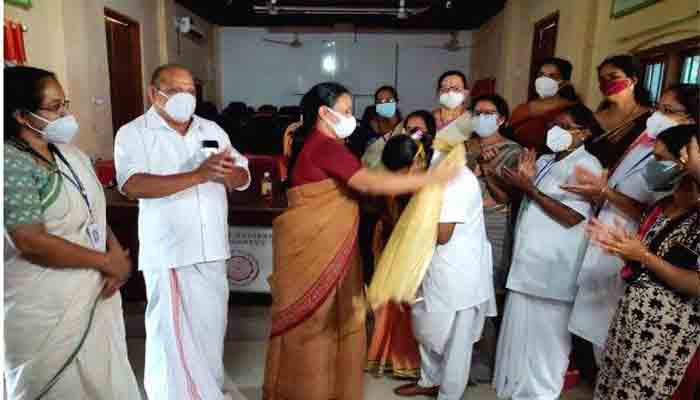 ചെങ്ങന്നൂര്: ഏഴര മണിക്കൂറില് 893 പേര്ക്ക് കോവിഡ് വാക്സിന് നല്കിയ ചെങ്ങന്നൂര് ജില്ലാ ആശുപത്രിയിലെ ജൂണിയര് പബ്ലിക്ക് നഴ്സ് കെ.പുഷ്പ ലതയെ മന്ത്രി വീണാ ജോര്ജ് ആദരിച്ചു. ചെങ്ങന്നൂര് ഐഎച്ച്ആര്ഡി കോളേജില് പ്രവര്ത്തിക്കുന്ന കോവിഡ് വാക്സിന് കേന്ദ്രത്തിലെത്തിയാണ് ആദരിച്ചത്. വാക്സിന് കേന്ദ്രത്തിലെ പ്രവര്ത്തകരെയും ചടങ്ങില് അഭിനന്ദിച്ചു.