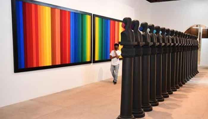അന്തരിച്ച അമേരിക്കന് കലാകാരനായ എല്സ്വര്ത്ത് കെല്ലിയുടെ സൃഷ്ടികളും ബ്ലോഡ്സോ പുനര്നിര്മ്മിച്ചിട്ടുണ്ട്. അശോക സ്തൂപങ്ങളില് നിന്ന് പ്രചോദനം ഉള്ക്കൊണ്ട് നിര്മ്മിച്ച ശില്പങ്ങള് ഓരോന്നും ഒരോ മുഖംമൂടി കൊണ്ട് അലങ്കരിച്ചിട്ടുണ്ട്. അവയില് ഇന്ത്യന് ഭരണഘടന എന്ന് എഴുതിയിട്ടുണ്ട്. അഭിപ്രായ സ്വാതന്ത്ര്യത്തിനുള്ള അവകാശം നിര്വചിക്കുന്ന ഭരണഘടനയുടെ ആര്ട്ടിക്കിള് 19 ലേക്കുള്ള വഴിയും കലാകാരന് വിശദീകരിക്കുന്നു.