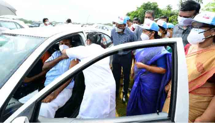 ഉമയനല്ലൂര് സ്വദേശിയായ സജീവന് കോവിഷീല്ഡ് ആദ്യ ഡോസ് നല്കി ഡ്രൈവ് ത്രൂ പരിപാടി തുടങ്ങി. 50 പേര്ക്ക് സ്പോട്ട് രജിസ്ട്രേഷനിലൂടെയും 10 പേര്ക്ക് ഓണ്ലൈന് രജിസ്ട്രേഷനിലൂടെയും വാക്സിന് നല്കി. ഓണ്ലൈനായി രജിസ്റ്റര് ചെയ്തവര്ക്ക് തിരിച്ചറിയല് രേഖയുടെ അടിസ്ഥാനത്തിലാണ് കുത്തിവയ്പ്പ് നടത്തുന്നത്.