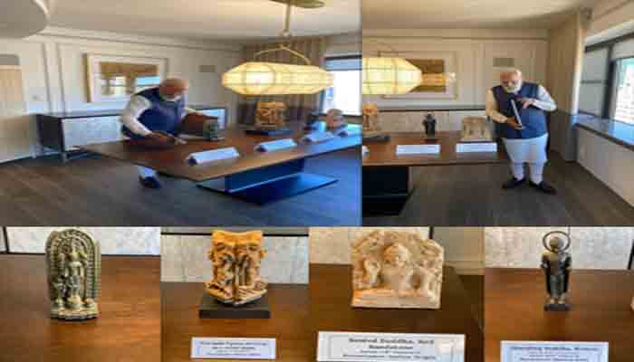 പ്രധാനമന്ത്രിയുടെ സന്ദർശന വേളയിൽ പുരാവസ്തുക്കൾ അമേരിക്ക കൈമാറി. അമൂല്യമായ പുരാവസ്തു ശേഖരം ഇന്ത്യക്ക് കൈമാറുന്നതിൽ പ്രധാനമന്ത്രി നന്ദി അറിയിച്ചു.