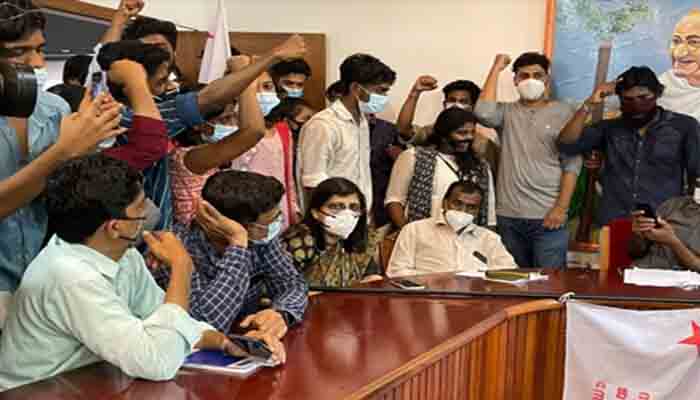 കൊച്ചി: കാമ്പസിൽ നിന്ന് മരം മുറിച്ചുകടത്തിയ സംഭവത്തിൽ മഹാരാജാസ് കോളേജ് പ്രിൻസിപ്പലിനെതിരായ എസ്എഫ്ഐ ഉപരോധം തുടരുന്നു. രാവിലെ സ്റ്റാഫ് മീറ്റിങ്ങിനിടെ എസ്എഫ്ഐയുടെ നേതൃത്വത്തിൽ ആരംഭിച്ച ഉപരോധം വൈകിട്ട് ഓഫീസ് സമയത്തിന് ശേഷവും തുടരുകയാണ്. മണിക്കൂറുകളായി പ്രിൻസിപ്പൽ ജോർജ് മാത്യുവും അധ്യാപകരും ഓഫീസിൽ കുടുങ്ങിയിരിക്കുകയാണ്.ഇന്നത്തെ വിദ്യാർഥി പ്രതിഷേധത്തെ തുടർന്ന് പ്രിൻസിപ്പലിനെതിരേ അന്വേഷണം പ്രഖ്യാപിച്ചിട്ടുണ്ട്. എന്നാൽ, പ്രിൻസിപ്പലിനെ അന്വേഷണ വിധേയമായി സസ്പെൻഡ് ചെയ്യുകയോ അദ്ദേഹം സ്വമേധയാ ലീവെടുക്കുകയോ ചെയ്താൽ മാത്രമേ ഉപരോധം അവസാനിപ്പിക്കൂവെന്ന് എസ്എഫ്ഐ മഹാരാജാസ് യൂണിറ്റ് സെക്രട്ടറി അഖിൽ മാദ്ധ്യമങ്ങളോട് പറഞ്ഞു.