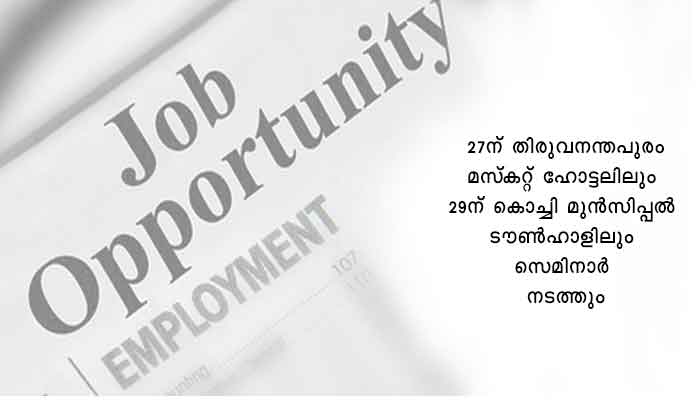 തിരുവനന്തപുരം: കേരള സർക്കാർ സ്ഥാപനമായ ഒഡെപെക്ക് മുഖേന ദക്ഷിണ കൊറിയയിൽ കാർഷിക വൃത്തിയിൽ ഏർപ്പെടാൻ അവസരം. പത്താം ക്ലാസ് പാസായിരിക്കണം. പ്രായപരിധി 25 മുതൽ 40 വയസ്സ് വരെ. ഇംഗ്ലീഷ് ഭാഷയിൽ അടിസ്ഥാന പരിജ്ഞാനമുള്ളവരായിരിക്കണം. കാർഷിക മേഖലയിൽ പ്രവർത്തിപരിചയം ഉള്ളവർക്ക് മുൻഗണന. പ്രതിമാസം ഒരു ലക്ഷം രൂപ വരെ ശമ്പളം. താല്പര്യമുള്ളവർ വിശദമായ ബയോഡാറ്റ സഹിതം recruit@odepc.in എന്ന മെയിലിൽ അപേക്ഷിക്കണം. ഇതുമായി ബന്ധപ്പെട്ട് 27ന് തിരുവനന്തപുരം മസ്‌കറ്റ് ഹോട്ടലിലും 29ന് കൊച്ചി മുൻസിപ്പൽ ടൗൺഹാളിലും സെമിനാർ നടത്തും. സെമിനാറിൽ പങ്കെടുക്കാൻ താല്പര്യമുള്ളവർ 0471-2329440/41/42/7736496574ൽ ബന്ധപ്പെടണം.  വിശദവിവരങ്ങൾക്ക്: www.odepc.kerala.gov.in.