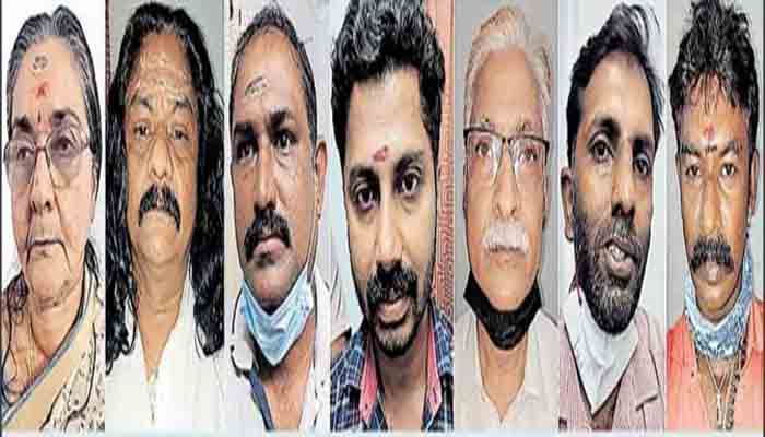 തൃശൂർ: കവടിയാർ കൊട്ടാരത്തിൽ നിന്നു മോഷണം പോയ തങ്കവിഗ്രഹമെന്ന പേരിൽ വ്യാജപുരാവസ്തു വിൽക്കാനുളള ശ്രമത്തിനിടയിൽ ഏഴംഗ തട്ടിപ്പു സംഘം പിടിയിലായി. പാവറട്ടി പാടൂർ മതിലകത്ത് അബ്ദുൽ മജീദ് (65), തിരുവനന്തപുരം തിരുമല തച്ചോട്ടുകാവ് അനിഴം നിവാസിൽ ഗീതാറാണി (63), പത്തനംതിട്ട കളരിക്കൽ ചെല്ലപ്പമണി ഷാജി (38), ആലപ്പുഴ കറ്റാനം പള്ളിക്കൽ വിഷ്ണുസദനം ഉണ്ണിക്കൃഷ്ണൻ (33), എളവള്ളി കണ്ടംപുള്ളി സുജിത് രാജ് (39), തൃശൂർ പടിഞ്ഞാറേക്കോട്ട കറമ്പക്കാട്ടിൽ ജിജു (45), പുള്ള് തച്ചിലേത്ത് അനിൽകുമാർ (40) എന്നിവരാണു പിടിയിലായത്. 20 കോടി രൂപയ്ക്കുവിൽക്കാൻ ശ്രമത്തിനിടെയാണ് ഇവർ നിഴൽ പൊലീസിന്റെ പിടിയിലായത്. .