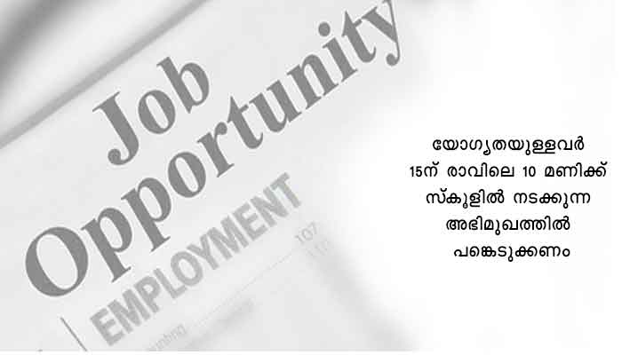 നെടുമങ്ങാട് സർക്കാർ ടെക്നിക്കൽ ഹൈസ്കൂളിൽ ഫിസിക്കൽ സയൻസ് അദ്ധ്യാപികയുടെ താത്ക്കാലിക (ദിവസവേതന അടിസ്ഥാനത്തിൽ) ഒഴിവുണ്ട്. ഹൈസ്കൂൾ തലത്തിൽ ഫിസിക്കൽ സയൻസ് ക്ലാസ്സുകൾ കൈകാര്യം ചെയ്യാൻ യോഗ്യതയുള്ളവർ 15ന് രാവിലെ 10 മണിക്ക് സ്കൂളിൽ നടക്കുന്ന അഭിമുഖത്തിൽ പങ്കെടുക്കണം. യോഗ്യത സർട്ടിഫിക്കറ്റുകൾ, പ്രവൃത്തി പരിചയ സർട്ടിഫിക്കറ്റുകൾ എന്നിവയുടെ അസ്സൽ അഭിമുഖത്തിന് ഹാജരാക്കണം. വിശദവിവരങ്ങൾക്ക്: 0472 2812686.