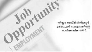തൃശ്ശൂർ: കേരള വന ഗവേഷണ സ്ഥാപനത്തിൽ 29 ജൂലൈ 2024 വരെ കാലാവധിയുള്ള ഒരു സമയ ബന്ധിത ഗവേഷണ പദ്ധതിയായ “എസ്റ്റാബ്ലിഷ്മെന്റ് ആന്റ് മെയ്ന്റനൻസ് ഓഫ് ദി സെന്റർ ഫോർ സിറ്റിസൻ സയൻസ് ആന്റ് ബയോഡൈവേഴ്സിറ്റി ഇൻഫോർമാറ്റിക്സ്” ൽ ഒരു സിസ്റ്റം അഡ്മിനിസ്ട്രേറ്റർ /കംപ്യൂട്ടർ പ്രോഗ്രാമറിന്റെ താൽക്കാലിക ഒഴിവിലേക്ക് നിയമിക്കുന്നതിനായി ഓൺലൈനായി അപേക്ഷ ക്ഷണിച്ചു. വിശദവിവരങ്ങൾക്ക് കേരള വന ഗവേഷണ സ്ഥാപനത്തിന്റെ വെബ്സൈറ്റ് (www.kfri.res.in) സന്ദർശിക്കുക.