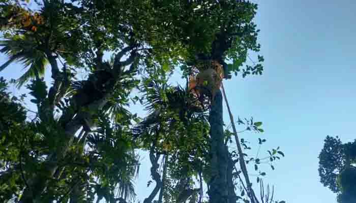 ഒമ്പതരയോടെയായിരുന്നു പാപ്ലശ്ശേരി അഴീക്കോടൻ നഗറിൽ 46-കാരനായ നടിക്കുന്നേൽ മനോജ് മരത്തിൽ കുടുങ്ങിയത്. 25 അടി ഉയരത്തിലുള്ള പ്ലാവിൽ കയറിയ മനോജിന് തലകറക്കം അനുഭവപ്പെടുകയായിരുന്നു.