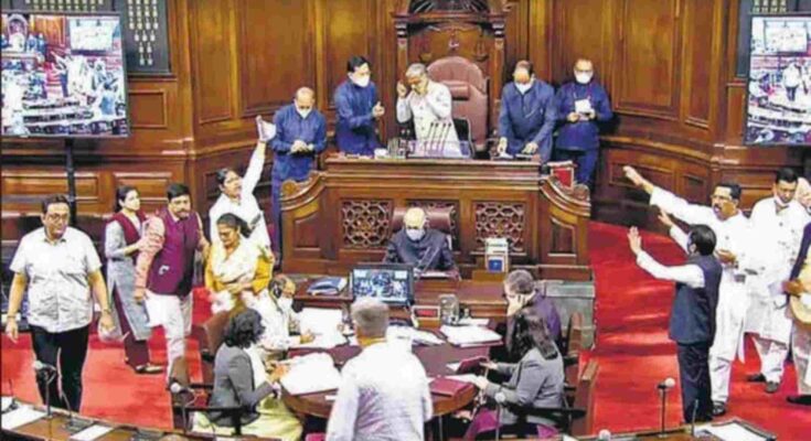 പാര്ലമെന്റിന് പുറത്തും പ്രതിഷേധമിരമ്പി. ചര്ച്ചയാവശ്യപ്പെട്ട് നല്കിയ നോട്ടീസ് തള്ളിയതോടെ കേരളത്തില് നിന്നുള്ള പ്രതിപക്ഷ എംപിമാരടക്കം രാജ്യസഭയുടെ നടുത്തളത്തിലിറങ്ങി പ്രതിഷേധിച്ചു.
