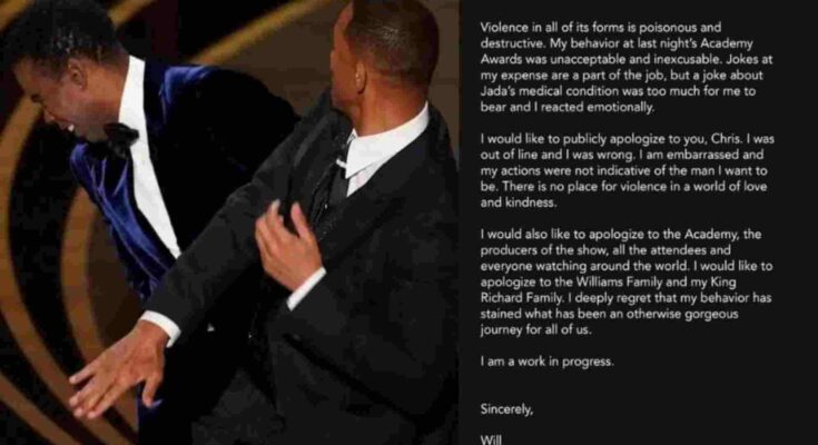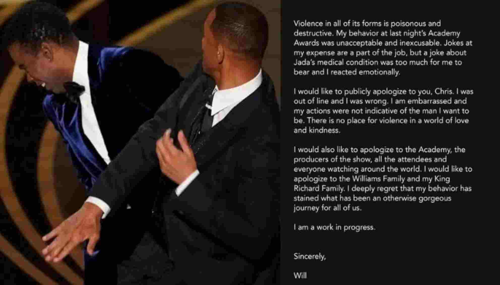 ഏത് രൂപത്തിലായാലും അക്രമം എന്നത് വിഷവും വിനാശകരവുമാണ്. കഴിഞ്ഞ രാത്രിയില് നടന്ന ഓസ്കര് അക്കാദമി അവാര്ഡിനിടെ എന്റെ പെരുമാറ്റം ഉള്ക്കൊള്ളാനോ ന്യായീകരിക്കാനോ കഴിയുന്നതല്ല. തമാശകള് പറയുകയെന്നത് എന്റെ ജോലിയുടെ ഭാഗമാണ്. പക്ഷേ ജാഡയുടെ ആരോഗ്യസ്ഥിതിയെക്കുറിച്ചുള്ള തമാശ എനിക്ക് താങ്ങാനാവുന്നതിലും അപ്പുറമായിരുന്നു.അതുകൊണ്ടാണ് വൈകാരികമായി പ്രതികരിച്ചുപോയത്. എനിക്ക് തെറ്റുപറ്റി.