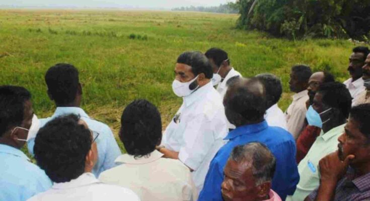 കോട്ടയം: നെല്കൃഷി നാശം സംഭവിച്ച തിരുവാര്പ്പ് പഞ്ചായത്തിലെ ജെ ബ്ലോക്ക് ( ഒന്പതിനായിരം പാടശേഖരം), തിരുവായിക്കര പാടശേഖരങ്ങള് സഹകരണ, രജിസ്ട്രേഷന് വകുപ്പുമന്ത്രി വി.എന്. വാസവന് സന്ദര്ശിച്ചു. 1850 ഏക്കര് വരുന്ന ജെ-ബ്ലോക്ക് പാടശേഖരത്തിലും 860 ഏക്കര് വരുന്ന തിരുവായിക്കര പാടശേഖരത്തിലും കൊയ്ത്തിനു പാകമായ നെൽച്ചെടികൾ വെള്ളത്തിൽ വീണുകിടക്കുകയാണ്. കൃഷിനാശം സംഭവിച്ച കര്ഷകര്ക്ക് നഷ്പരിഹാരം നല്കാന് അടിയന്തര ഇടപെടലുണ്ടാക്കുമെന്ന് മന്ത്രി അറിയിച്ചു.