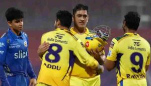 മുംബൈ: മുംബൈ ഇന്ത്യന്സിനെതിരായ മല്സരത്തില് ചെന്നൈ സൂപ്പര് കിംഗ്സിന് മൂന്ന് വിക്കറ്റ് ജയം. മഹേന്ദ്ര സിംഗ് ധോണിയുടെ മികച്ച പ്രകടനമാണ് തോല്വിയിലേക്ക് എത്തിയ ടീമിനെ കരകയറ്റിയത്. അന്തിമ ഓവറുകളില് രംഗത്തെത്തിയ താരം 13 പന്തുകളില് നിന്ന് 28 റണ്സാണ് അടിച്ചെടുത്തത്. അവസാന പന്ത് ബൗണ്ടറി കടത്തിയാണ് ചെന്നൈ മുന് നായകന് ടീമിന് വിജയമൊരുക്കിയത്. സ്കോര്: മുംബൈ ഇന്ത്യന്സ്- 155/7. ചെന്നൈ സൂപ്പര് കിംഗ്സ്- 156/7. ചെന്നൈക്കു വേണ്ടി അമ്പാട്ടി റായിഡു (35ല് 40), റോബിന് ഉത്തപ്പ (25ല് 30) എന്നിവരും മികച്ച പ്രകടനം കാഴ്ചവച്ചു. നേരത്തെ, ചെന്നൈയുടെ കിടയറ്റ ബൗളിംഗിനു മുമ്പില് പതറിപ്പോയ മുംബൈക്ക് നിശ്ചിത 20 ഓവറില് ചെറിയ സ്കോര് മാത്രമേ പടുത്തുയര്ത്താനായുള്ളൂ. 43 പന്തില് 51 റണ്സ് അടിച്ചെടുത്ത തിലക് വര്മയുടെയും 21ല് 32 നേടിയ സൂര്യകുമാര് യാദവിന്റെയും ബാറ്റിംഗാണ് മുംബൈയെ 155ലെങ്കിലും എത്താന് സഹായിച്ചത്. ഋതിക് ഷോകീന് 25 പന്തില് 25 റണ്സെടുത്തു.