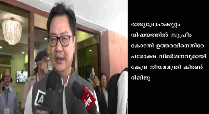 ന്യൂഡല്‍ഹി: രാജ്യദ്രോഹക്കുറ്റം വിഷയത്തില്‍ സുപ്രീംകോടതി ഉത്തരവിനെതിരേ പരോക്ഷ വിമര്‍ശനവുമായി കേന്ദ്ര നിയമമന്ത്രി കിരണ്‍ റിജിജു. കോടതിയെയും അതിന്റെ സ്വാതന്ത്ര്യത്തെയും ബഹുമാനമുണ്ടെന്നും എന്നാല്‍, ഒരു ലക്ഷ്മണരേഖയുണ്ടെന്നും അതൊരിക്കലും മറികടക്കാന്‍ പാടില്ലെന്നും അദ്ദേഹം അഭിപ്രായപ്പെട്ടു.വിഷയത്തില്‍ കേന്ദ്രത്തിന്റെ നിലപാട് വ്യക്തമാക്കിയിട്ടുണ്ടെന്നും കോടതിയെ അറിയിച്ചിട്ടുണ്ടെന്നും അദ്ദേഹം പറഞ്ഞു. ”കോടതിയെയും അതിന്റെ സ്വാതന്ത്ര്യത്തെയും ഞങ്ങള്‍ ബഹുമാനിക്കുന്നു. പക്ഷേ, എല്ലാവരും ബഹുമാനിക്കേണ്ട ഒരു ലക്ഷ്മണരേഖയുണ്ട്. കോടതി സര്‍ക്കാരിനെയും നിയമനിര്‍മാണസഭയെയും ബഹുമാനിക്കണം. അതുപോലെ സര്‍ക്കാര്‍ കോടതിയെയും ബഹുമാനിക്കണം. ഇക്കാര്യത്തില്‍ കൃത്യമായ അതിര്‍വരമ്പുണ്ട്. ആ ലക്ഷ്മണരേഖ ആരും മറികടക്കാന്‍ പാടില്ല. ഭരണഘടനയിലെ വ്യവസ്ഥകളെയും നിലവിലെ നിയമങ്ങളെയും ബഹുമാനിക്കുന്നുണ്ടെന്ന കാര്യം ഉറപ്പുവരുത്തേണ്ടതുണ്ട്” -റിജിജു കൂട്ടിച്ചേര്‍ത്തു. അതേസമയം, കോടതിയുടെ ഉത്തരവ് തെറ്റായോ എന്ന ചോദ്യത്തില്‍നിന്ന് അദ്ദേഹം ഒഴിഞ്ഞുമാറി.