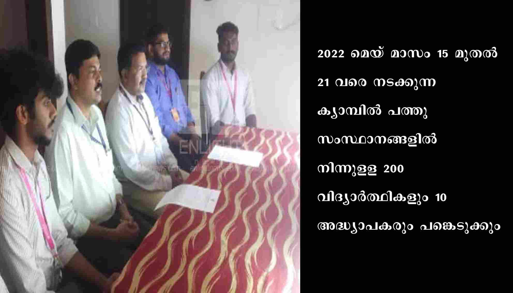 എല്ലാ ദിവസവും വിവിധ സംസ്ഥാനങ്ങളില് നിന്നുളള കലാ സാസംസ്കാരിക പരിപാടികള് അവതരിപ്പിക്കും. കൂടാതെ ക്യാമ്പിന്റെ ഭാഗമായി പരുന്തുപാറ ശുചീകരണം,രക്തദാന ക്യാമ്പ് ,മൂലകോശ ദാദാക്കളുടെ വിവരശേഖരം തുടങ്ങിയ പരിപാടി സംഘടിപ്പിക്കും. പ്രസ്തുത ക്യാമ്പില് വിവിധ വകുപ്പ മന്ത്രിമാര്, എംപി,എംഎല്എമാര്, ജില്ലാ കളക്ടര് ,പോലീസ് മേധാവി തുടങ്ങിയവര് പങ്കെടുക്കുമെന്ന് പ്രോഗ്രം കോര്ഡിനേറ്റര് ഡോ. ജോയ് വര്ഗീസ് വി.എം, കോളേജ് പ്രിന്സിപ്പല് ഡോ. ജയരാജ് കൊച്ചുപിളള, പി.ആര്ഒ നികിത്, ഷോണ്.കെ.ഷാജി വോളണ്ടിയര് സെക്രട്ടറി, പോള് ഷെയ്സ്, ഇനോക്ക് സാം, എന്നിവര് വാര്ത്താ സമ്മേളനത്തില് അറിയിച്ചു