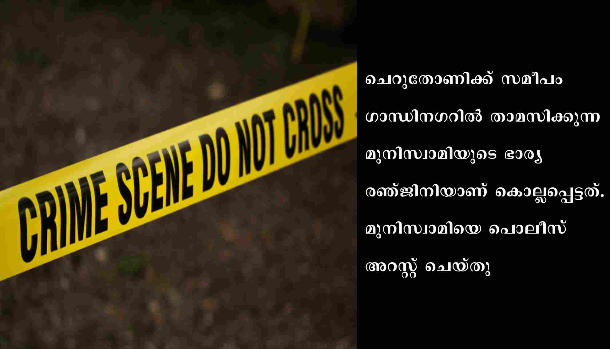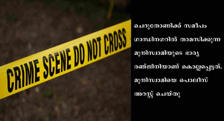 ഇടുക്കി: ചെറുതോണിയിൽ കിടപ്പുരോഗിയായ വീട്ടമ്മയെ ഭർത്താവ് കൊലപ്പെടുത്തി. ചെറുതോണിക്ക് സമീപം ഗാന്ധിനഗറിൽ താമസിക്കുന്ന മുനിസ്വാമിയുടെ ഭാര്യ രഞ്ജിനിയാണ് കൊല്ലപ്പെട്ടത്. മുനിസ്വാമിയെ പൊലീസ് അറസ്റ്റ് ചെയ്തു. 2022 മെയ് 11 ബുധനാഴ്ച്ച രാത്രിയാണ് സംഭവം. മുനിസ്വാമിയുടെ ഭാര്യ രഞ്ജിനി ആറ് മാസത്തിലധികമായി കിടപ്പിലായിരുന്നു . ഇവർ രണ്ടുപേരും മാത്രമായിരുന്നു വീട്ടിൽ താമസം. ഭാര്യയെ കൊലപ്പെടുത്തിയ ശേഷം അവർ മരിച്ചതായി മുനിസ്വാമി അയൽവാസികളെ അറിയിക്കുകയായിരുന്നു. മക്കളിലൊരാളെയും വിളിച്ചറിയിച്ചു.