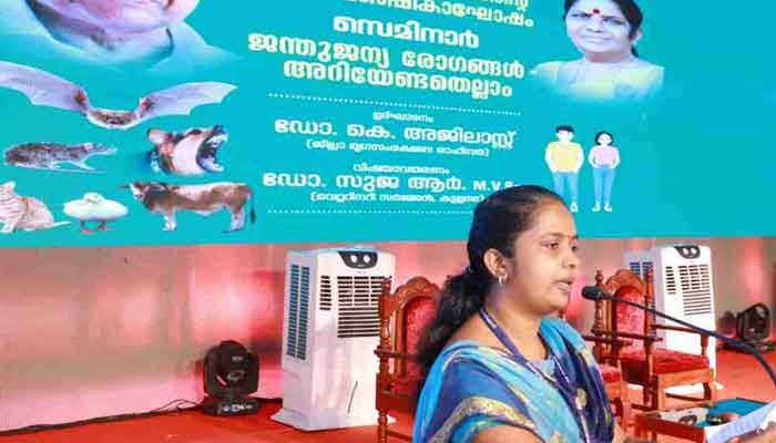 കുട്ടികള് വളര്ത്തുമൃഗങ്ങളുമായി ഇടപെടുമ്പോള് ശ്രദ്ധിക്കേണ്ട കാര്യങ്ങളെക്കുറിച്ചും സെമിനാറില് പ്രതിപാദിച്ചു. തൊഴില്, ഭക്ഷണം, മൃഗപരിപാലനം തുടങ്ങി പല മേഖലകളിലായി മനുഷ്യര് ജീവജാലങ്ങളുമായി നേരിട്ടും അല്ലാതെയും ഇടപഴകുന്നതു വഴിയാണ് രോഗം ബാധിക്കുന്നത്. കോവിഡ് സമയത്ത് വീട്ടിനുള്ളില് മൃഗങ്ങളെ വളര്ത്തുന്ന ശീലം മലയാളികള്ക്ക് വര്ദ്ധിച്ചുവെന്നും അത് ജന്തുജന്യ രോഗങ്ങള് വര്ദ്ധിപ്പിക്കുന്ന സാഹചര്യമുണ്ടായിയെന്നും സെമിനാറില് പറഞ്ഞു. തെരുവുനായ നിയന്ത്രണത്തിന് ജനങ്ങളുടെ ചിന്താരീതിയും ലൈസന്സിങ് രീതിയും മാറണമെന്നും ഡോ.ആര്.സുജ പറഞ്ഞു.