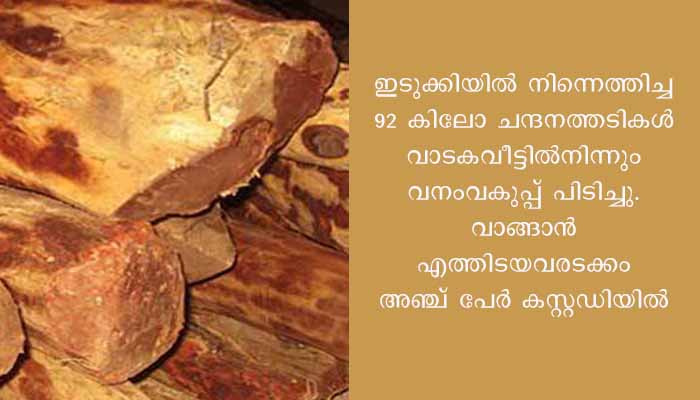 ചന്ദനത്തടി വേട്ട; 5 പേർ കസ്റ്റഡിയിൽ