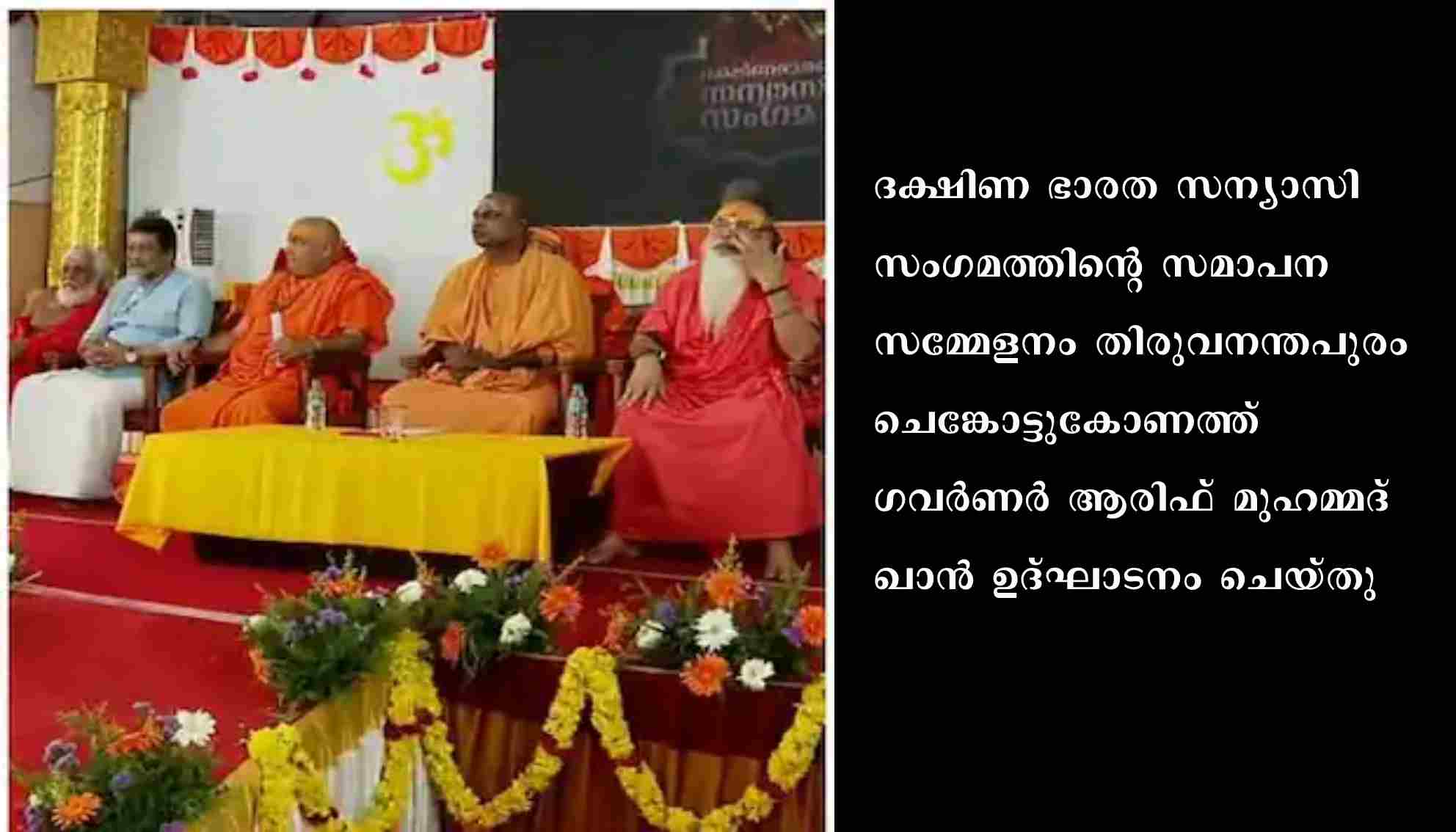 തിരുവനന്തപുരം: ദക്ഷിണ ഭാരത സന്യാസി സംഗമത്തിന്റെ സമാപന സമ്മേളനം തിരുവനന്തപുരം ചെങ്കോട്ടുകോണത്ത് ഗവർണർ ആരിഫ് മുഹമ്മദ് ഖാൻ ഉദ്ഘാടനം ചെയ്തു.