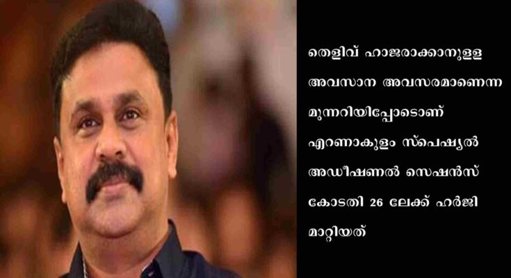 കൊച്ചി. നടിയെ ആക്രമിച്ച കേസില് ദിലീപിന്റെ ജാമ്യം റദ്ദാക്കണമെന്ന ഹര്ജിയില് തെളിവ് ഹാജരാക്കാന് വിചാരണ കോടതി പ്രോസിക്യൂഷന് ഒരവസരം കൂടി അനുവദിച്ചു. കൃത്യമായ തെളിവുകള് ഹാജരാക്കുന്നില്ലെന്ന് ചൂണ്ടിക്കാട്ടി കോടതി പ്രോസിക്യൂഷനെ വിമര്ശിച്ചിരുന്നു. ഹര്ജിപരിഗണിക്കാന് ഈ മാസം 26ലേക്ക് മാറ്റി. തെളിവ് ഹാജരാക്കാനുളള അവസാന അവസരമാണെന്ന മുന്നറിയിപ്പോടൊണ് എറണാകുളം സ്പെഷ്യല് അഡീഷണല് സെഷന്സ് കോടതി 26ലേക്ക് ഹര്ജി മാറ്റിയത്.