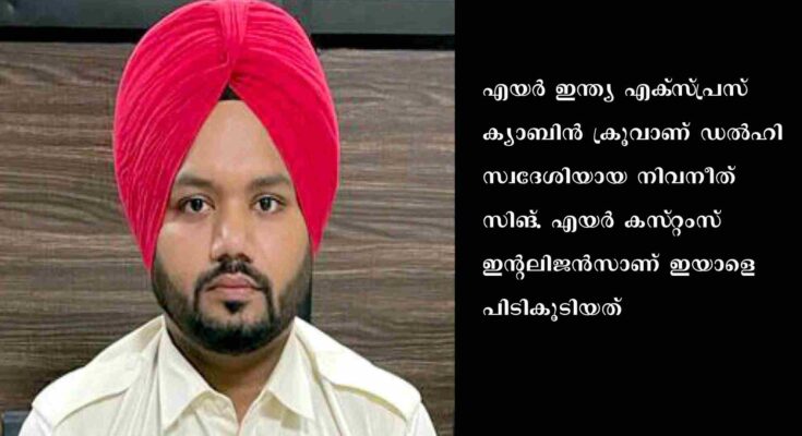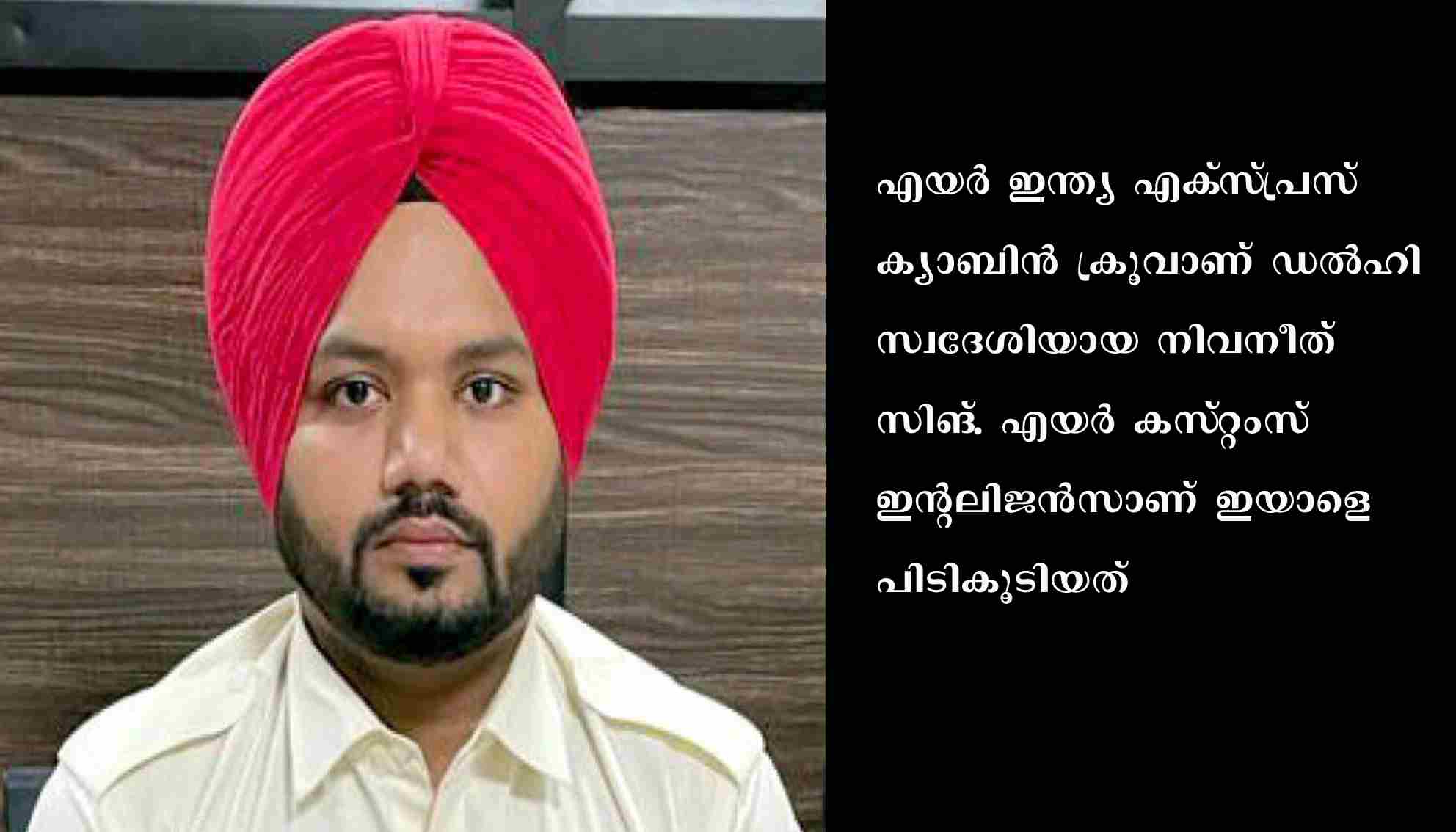 എയര്‍ ഇന്ത്യ എക്‌സ്‌പ്രസ്‌ ക്യാബിന്‍ ക്രൂവാണ്‌ ഡല്‍ഹി സ്വദേശിയായ നിവനീത്‌ സിങ്‌. എയര്‍ കസ്‌റ്റംസ്‌ ഇന്റലിജന്‍സാണ്‌ ഇയാളെ പിടികൂടിയത്‌. ദുബൈ- കോഴിക്കോട്‌ എയര്‍ ഇന്ത്യ എക്‌സ്‌പ്രസ്‌ വിമാനത്തില്‍ ക്യാബിന്‍ക്രൂവായിരുന്നു. കഴിഞ്ഞ വര്‍ഷവും സ്വര്‍ണം കടത്താന്‍ ശ്രമിച്ചതിന്‌ എയര്‍ ഇന്ത്യ എക്‌സ്‌പ്രസിലെ ക്യാബിന്‍ ക്രൂ പിടിയിലായിട്ടുണ്ട്‌.