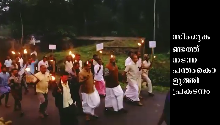പന്തം കൊളുത്തി പ്രകടനത്തിനും സമരത്തിനും എൻ എം ശ്രീകുമാർ, യേശുദാസ്, ബേബി വെട്ടിച്ചിറ, പി വി പൗലോസ്, കെ ദ്വരൈരാജ്, ജോഷി പേമരം, സുനിൽ പാറേമാടം, പി കെ പ്രകാശ്, പി ഡി സേവ്യർ, ഇ കെ സൽപതി, ജീവൻ കുമാർ പേഴുംകുടി, എം ബി രാജ, വിജയകുമാർ, സുനി സജീവ്, ഷീബ സജി, മറിയക്കുട്ടി, ഓമന ഈട്ടിക്കൽ, സജി പേമരം, പി ഡി ജോയി, വി സി ജോർജ്, പി ടി മാർക്കോസ്, ജിജോ മോൻ ജോർജ്, രാജൻ പാറേമാടം, മനോജ് കൂനംമാക്കൽ, രമേശ് കുമാർ നടുവിൽ തുടങ്ങിയവർ നേതൃത്വം നൽകി.