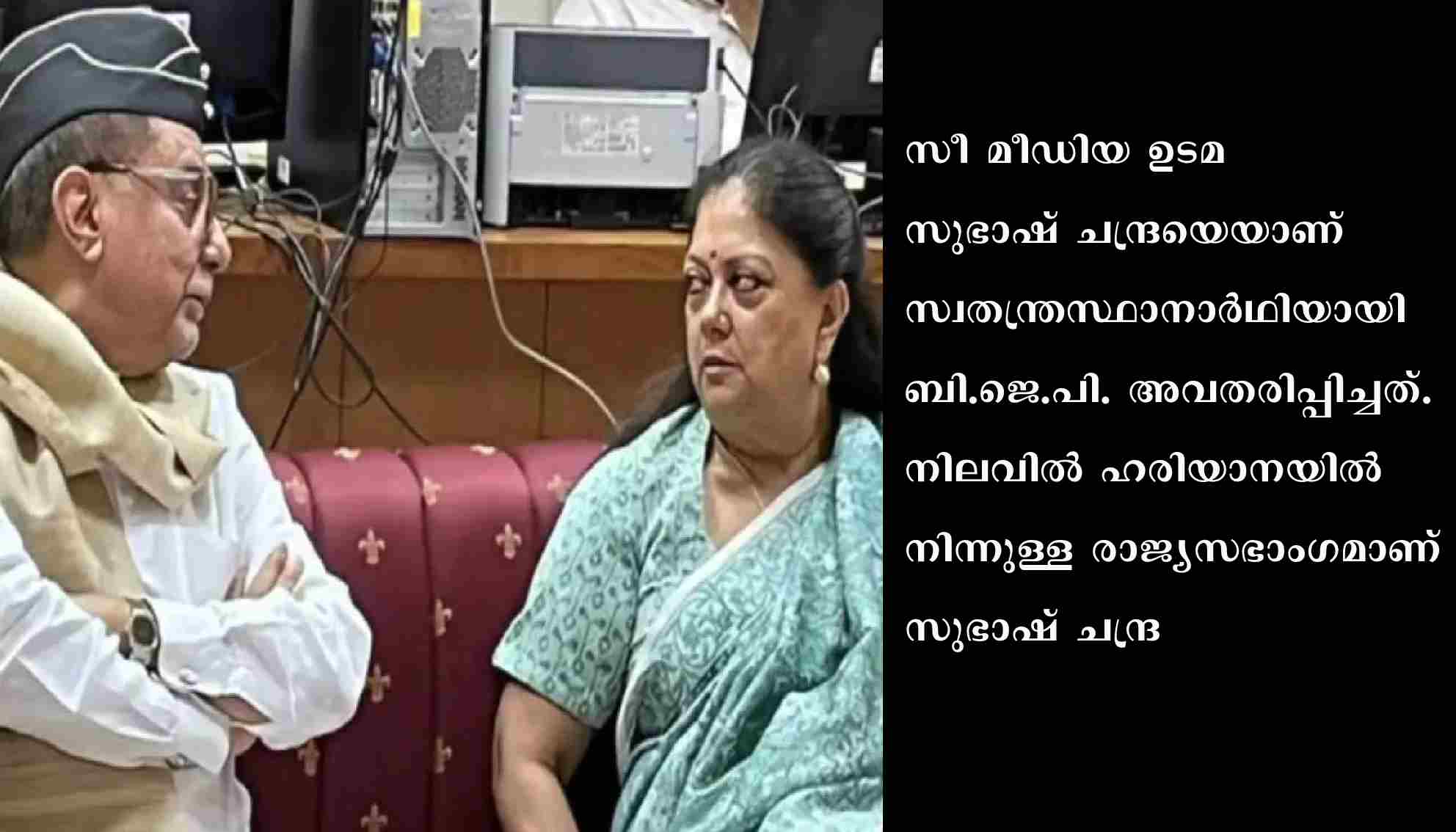 ജയ്പുര്: രാജ്യസഭാ തെരഞ്ഞെടുപ്പില് രാജസ്ഥാനില് അപ്രതീക്ഷിത സ്ഥാനാര്ഥിയെ ഇറക്കി ബി.ജെ.പി. സീ മീഡിയ ഉടമ സുഭാഷ് ചന്ദ്രയെയാണ് സ്വതന്ത്രസ്ഥാനാര്ഥിയായി ബി.ജെ.പി. അവതരിപ്പിച്ചത്. നിലവില് ഹരിയാനയില് നിന്നുള്ള രാജ്യസഭാംഗമാണ് സുഭാഷ് ചന്ദ്ര. ഉത്തര്പ്രദേശില്നിന്നുള്ള പ്രമോദ് തിവാരിക്കെതിരേയാണ് സുഭാഷ് ചന്ദ്ര മത്സരിക്കുന്നത്. സ്ഥാനാര്ഥിയെ കെട്ടിയിറക്കിയെന്നാരോപിച്ചു കോണ്ഗ്രസില് വിവാദമുണ്ടായിരുന്നു. ഇതു മുതലെടുക്കുകയാണ് സുഭാഷ് ചന്ദ്രയുടെ ദൗത്യം. രണ്ദീപ് സിങ് സുര്ജേവാല, മുകുള് വാസ്നിക് എന്നിവരാണ് കോണ്ഗ്രസ് ടിക്കറ്റില് രാജസ്ഥാനില്നിന്നു രാജ്യസഭയിലേക്കു മത്സരിക്കുന്നത്. സംസ്ഥാനത്ത് ബി.ജെ.പിക്ക് ഒരു സീറ്റാണുറപ്പുള്ളത്. ഈ സീറ്റില് ഘനശ്യാം തിവാരിയാണ് പാര്ട്ടി സ്ഥാനാര്ഥി. 200 അംഗ രാജസ്ഥാന് നിയമസഭയില് 41 വോട്ട് ലഭിച്ചാല് രാജ്യസഭയിലെത്താനാകും. കോണ്ഗ്രസിന് നിയമസഭയില് 108 വോട്ടുകളുണ്ട്. ബി.ജെ.പിക്ക് 71 ഉം. 30 അധിക വോട്ടുകള് ബി.ജെ.പിക്ക് ബാക്കിയുണ്ടെങ്കിലും രണ്ടാമതൊരു സീറ്റു നേടാന് അവര്ക്ക് 11 പേരുടെ പിന്തുണ കൂടി വേണം. മൂന്നാമതൊരു സീറ്റ് ലഭിക്കണമെങ്കില് കോണ്ഗ്രസിന് 15 വോട്ടുകള് കൂടി അധികമായി ലഭിക്കണം. ഇതിനുള്ള ശ്രമം കോണ്ഗ്രസ് നടത്തുമ്പോഴാണ് ബി.ജെ.പി. നീക്കം