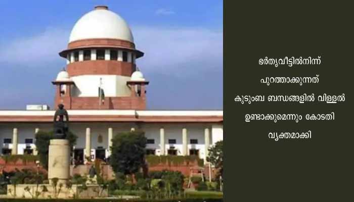 ന്യൂഡൽഹി: സ്വന്തം വീട്ടിലും ഭർതൃഗൃഹത്തിലും സ്ത്രീക്ക് ഒരുപോലെ അവകാശമുണ്ടെന്നും വീട്ടിൽനിന്ന് അവരെ പുറത്താക്കാനാകില്ലെന്നും സുപ്രീംകോടതി. ജസ്റ്റിസുമാരായ അജയ് രസ്തോഗി, ബി വി നാഗരത്ന എന്നിവരുടെ ബെഞ്ച് അഭിപ്രായപ്പെട്ടു. ഭർതൃവീട്ടിൽനിന്ന് പുറത്താക്കുന്നത് കുടുംബ ബന്ധങ്ങളിൽ വിള്ളൽ ഉണ്ടാക്കുമെന്നും കോടതി വ്യക്തമാക്കി. എന്നാൽ സ്ത്രീകളുടെ പ്രവൃത്തികളിൽ പരാതിയുള്ള പക്ഷം മറ്റു കുടുംബാംഗങ്ങളിൽ നിന്ന് അകലം പാലിക്കണമെന്ന നിർദേശം നൽകാമെന്നും കോടതി ചൂണ്ടിക്കാട്ടി. ഇന്ത്യയിലെ ഭൂരിഭാഗം സ്ത്രീകളും മാതാപിതാക്കൾക്കൊപ്പവും, ഭർത്താവിന്റെ മാതാപിതാക്കൾക്കൊപ്പവുമാണ് ജീവിക്കുന്നത്. കുടുംബജീവിതം നയിക്കുന്ന ഇവരിൽ പലരും സ്വന്തമായി വരുമാനം ഉള്ളവരോ ആയിരിക്കില്ല. ഇവരെ വീട്ടിൽ നിന്നും പുറത്താക്കാൻ ആർക്കും അവകാശമില്ലെന്ന് ജസ്റ്റിസ് നാഗരാജ പറഞ്ഞു. ഭർതൃഗൃഹത്തിൽ തനിക്കും ഭർത്താവിനും താമസം നിഷേധിക്കുന്നു എന്ന് ചൂണ്ടിക്കാട്ടി മഹാരാഷ്ട്ര സ്വദേശിനി നൽകിയ അപ്പീലിലാണ് കോടതിയുടെ നിരീക്ഷണം. ഹർജി 02/06/22 (വ്യാഴാഴ്ച)പരിഗണിക്കും. ഹർജി പരിഗണിക്കുന്ന സമയത്ത് മഹാരാഷ്ട്ര സ്വദേശിനിയുടെ ഭർത്താവിന്റെ വീട്ടുകാരുമായി വീഡിയോ കോൺഫറൻസ് മുഖേന ആശയവിനിമയം നടത്താൻ സൗകര്യമൊരുക്കണമെന്ന് കോടതിയിൽ രജിസ്ട്രാർക്ക് നിർദ്ദേശം നൽകി.