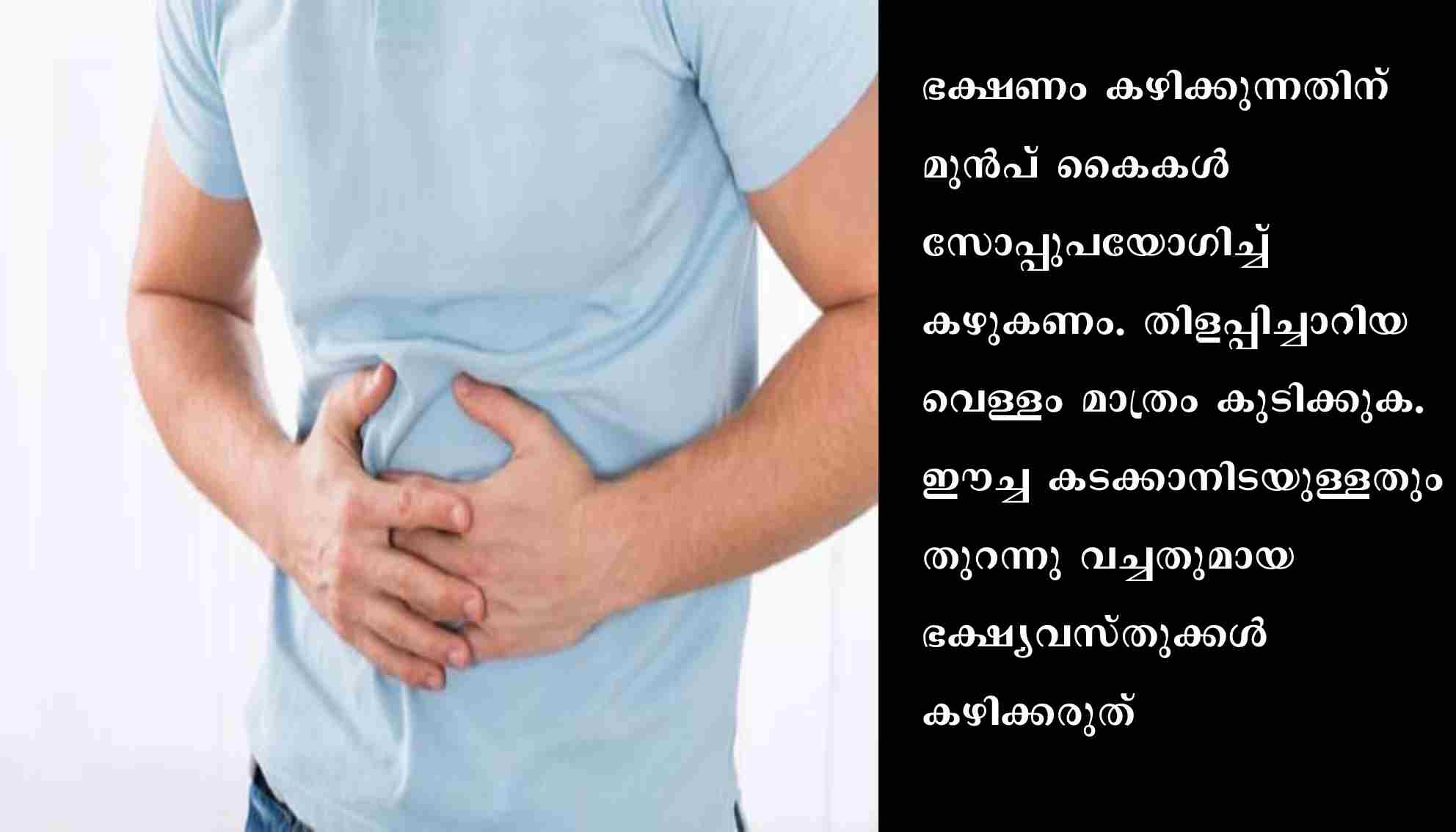 ഭക്ഷണം കഴിക്കാനുപയോഗിക്കുന്ന പാത്രങ്ങള്‍ വൃത്തിയുള്ള വെള്ളത്തില്‍ കഴുകണം. കുടിവെള്ള സ്രോതസ്സുകള്‍ കൃത്യമായ ഇടവേളകളില്‍ ക്ലോറിനേറ്റ് ചെയ്യുക. ഭക്ഷണം പാകം ചെയ്യുന്നയിടങ്ങളില്‍ ഈച്ചശല്യം വരാതെ സൂക്ഷിക്കണം. ഭക്ഷണം പാകം ചെയ്യുന്ന സ്ഥലം വൃത്തിയായി സൂക്ഷിക്കുക തുടങ്ങിയ കാര്യങ്ങള്‍ പ്രത്യേകം ശ്രദ്ധിക്കണമെന്നും ഡി.എം.ഒ. അറിയിച്ചു.