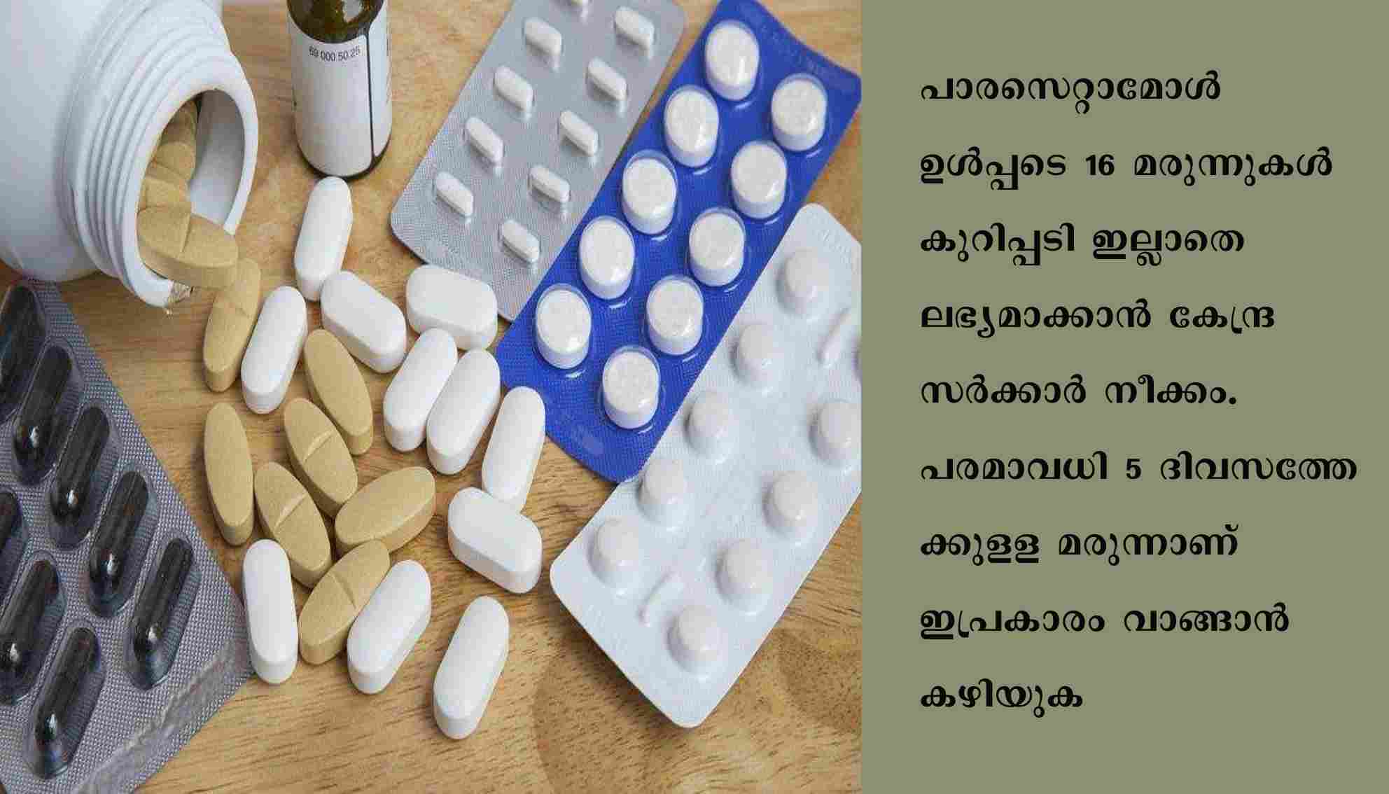 ന്യൂ ഡല്ഹി: പാരസെറ്റാമോള് ഉള്പ്പടെ 16 മരുന്നുകള് കുറിപ്പടി ഇല്ലാതെ ലഭ്യമാക്കാന് കേന്ദ്രസര്ക്കാര് നീക്കം. പരമാവധി 5 ദിവസത്തേക്കുളള മരുന്നാണ് ഇപ്രകാരം വാങ്ങാന് കഴിയുക. തുടര്ന്നും രോഗം ഭേതമായില്ലെങ്കില് ഡോക്ടറുടെ സേവനം തേടണമെന്നും കരട് നിര്ദ്ദേശത്തില് പറയുന്നു. കഫത്തിന്റെ ബുദ്ധിമുട്ട് മാറുന്നതിനുളള മരുന്ന്, വയറിളക്കത്തിന് ഉപയോഗിക്കുന്ന മരുന്ന് , ചില മൗത്ത് വാഷുകള് , മുഖക്കുരു മാറ്റുന്നതിനുളള ക്രീമുകള്, ക്രീം രൂപത്തിലുളള വേദനാസംഹാരികള് എന്നിവയുള്പ്പടെയാണ് കുറിപ്പടിയില്ലാതെ ലഭ്യമാവുക.