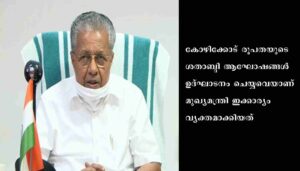 ‘അതേസമയം മുഖ്യമന്ത്രിയെ വാനോളം പുകഴ്ത്തിയായിരുന്നു കോഴിക്കോട് ബിഷപ്പ് മാർ വർഗ്ഗീസ് ചക്കാലക്കലിന്റെ സ്വാഗത പ്രസംഗം. തീയിൽ കുരുത്തത് വെയിലത്ത് വാടില്ലെന്നായിരുന്നു ഇപ്പോൾ നടക്കുന്ന പ്രതിഷേധങ്ങളുടെ പശ്ചാത്തലം വിശദീകരിച്ച് കോഴിക്കോട് ബിഷപ്പ്, പിണറായി വിജയനെ വിശേഷിപ്പിച്ചത്. കണ്ണൂരിൽ കമ്യൂണിസ്റ്റ് പ്രസ്ഥാനത്തിന്റെ അമരത്ത് നിന്നുകൊണ്ട് വളർന്നുവന്ന ജ്വലിക്കുന്ന നേതാവാണ് പിണറായി വിജയനെന്നും അദ്ദേഹം പറഞ്ഞു.