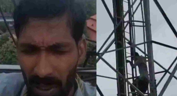 കാസർകോട്: മൊബൈൽ ടവറിന് മുകളിൽ കയറി യുവാവിന്റെ ആത്മഹത്യാ ഭീഷണി. പാലക്കുന്ന് സ്വദേശി ഷൈജുവാണ് ആത്മഹത്യാ ഭീഷണി മുഴക്കിയത്. തനിക്കെതിരെ പൊലീസ് കള്ളക്കേസ് എടുക്കുന്നുവെന്നും ഇത് പിൻവലിക്കണമെന്നും ആവശ്യപ്പെട്ടായിരുന്നു ആത്മഹത്യാ ഭീഷണി. സംഭവത്തിൽ മുഖ്യമന്ത്രി ഇടപെടണമെന്നും യുവാവ് ആവശ്യപ്പെട്ടു. 2022 ജൂൺ 22ന് രാവിലെ പത്തോടെയാണ് ഷൈജു നഗരത്തിലെ ഒരു കെട്ടിടത്തിന് മുകളിൽ സ്ഥാപിച്ച മൊബൈൽ ടവറിന് മുകളിൽ കയറിയത്.