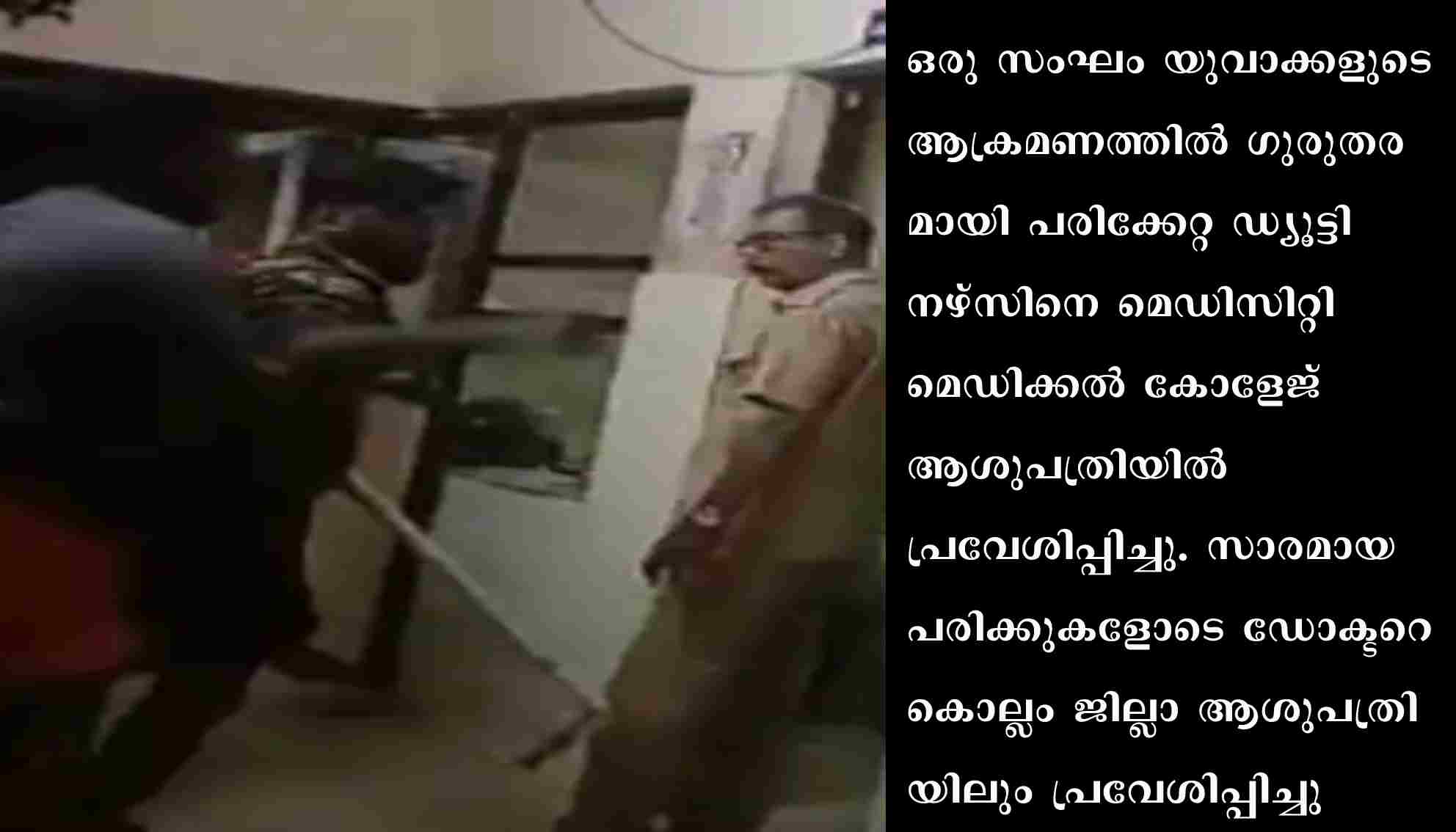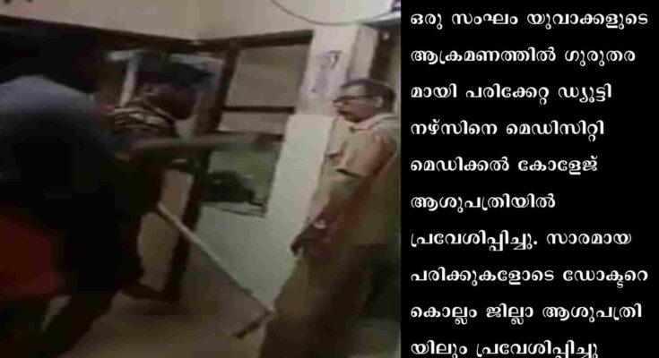 കൊല്ലം: കൊല്ലം നീണ്ടകര താലൂക്കാശുപത്രിയിലെ നഴ്സിനും ഡോക്ടർക്കും നേരെ ക്രൂരമായ ആക്രമണം. ഡോക്ടർ ഉണ്ണികൃഷ്ണൻ, നഴ്സ് ശ്യാമിലി എന്നിവർക്ക് നേരെയാണ് ആക്രമണമുണ്ടായത്. ഒരു സംഘം യുവാക്കളുടെ ആക്രമണത്തിൽ ഗുരുതരമായി പരിക്കേറ്റ ഡ്യൂട്ടി നഴ്സിനെ മെഡിസിറ്റി മെഡിക്കൽ കോളേജ് ആശുപത്രിയിൽ പ്രവേശിപ്പിച്ചു. സാരമായ പരിക്കുകളോടെ ഡോക്ടറെ കൊല്ലം ജില്ലാ ആശുപത്രിയിലും പ്രവേശിപ്പിച്ചു.