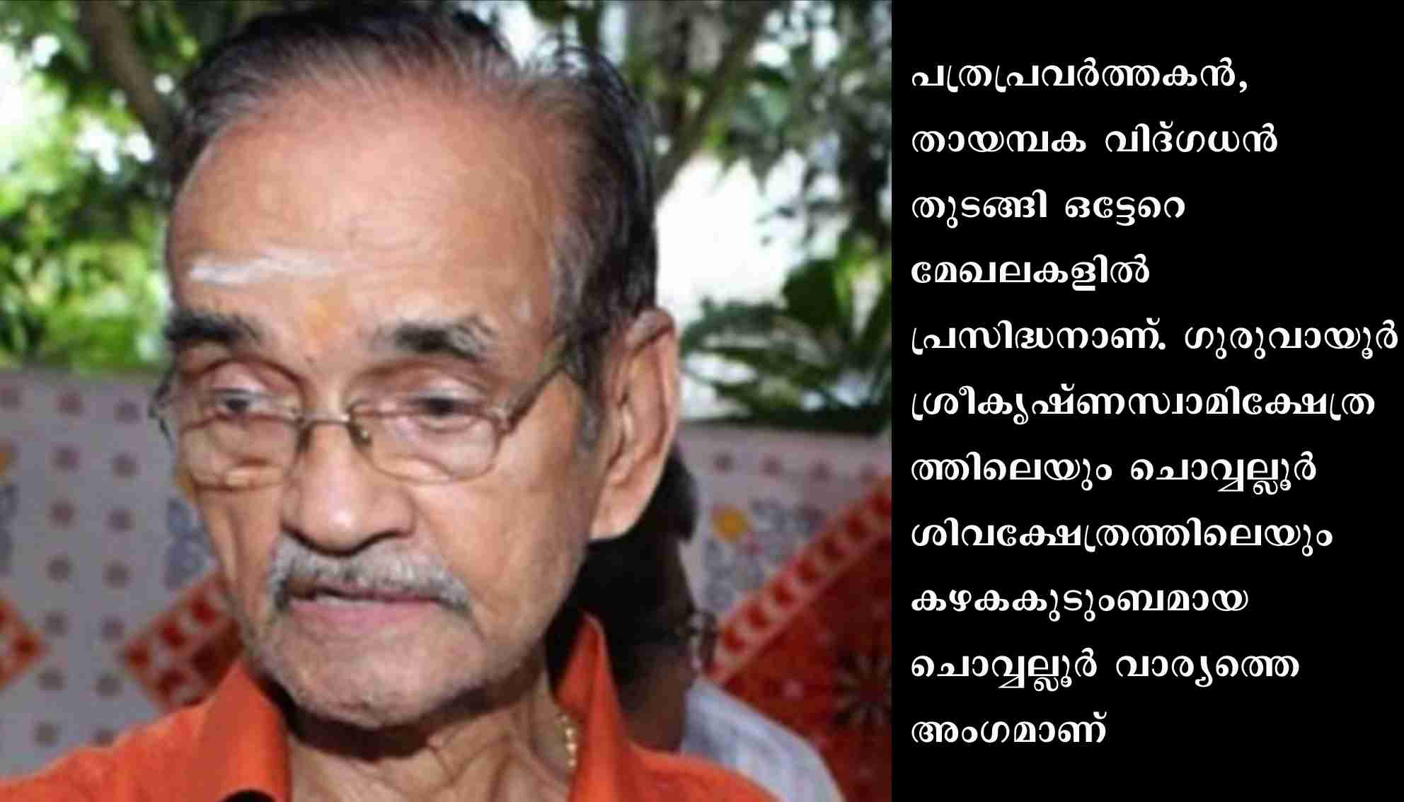 പത്രപ്രവർത്തകൻ, തായമ്പക വിദ്ഗധൻ തുടങ്ങി ഒട്ടേറെ മേഖലകളിൽ പ്രസിദ്ധനാണ്. ഗുരുവായൂർ ശ്രീകൃഷ്ണസ്വാമിക്ഷേത്രത്തിലെയും ചൊവ്വല്ലൂർ ശിവക്ഷേത്രത്തിലെയും കഴകകുടുംബമായ ചൊവ്വല്ലൂർ വാര്യത്തെ അംഗമാണ്. ചലച്ചിത്രങ്ങൾക്കും നിരവധി ആൽബങ്ങൾക്കും രചന നിർവ്വഹിച്ചിട്ടുണ്ട്. ഭക്തിഗാനരചയിതാവ് എന്ന നിലയിൽ കൂടുതൽ ശ്രദ്ധേയനായി.