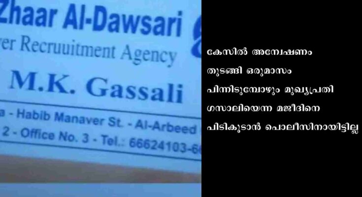 കൊച്ചി: കുവൈറ്റ് മനുഷ്യക്കടത്ത് കേസിൽ മുഖ്യപ്രതി ഗസാലിയെ കേരളത്തിൽ എത്തിക്കാൻ അന്വേഷണ സംഘം. കേസിൽ അന്വേഷണം തുടങ്ങി ഒരുമാസം പിന്നിടുമ്പോഴും മുഖ്യപ്രതി ഗസാലിയെന്ന മജീദിനെ പിടികൂടാൻ പൊലീസിനായിട്ടില്ല.2022 ജൂൺ 23 വ്യാഴാഴ്ച കണ്ണൂർ മരക്കാർകണ്ടിയിൽ അന്വേഷണ സംഘം എത്തിയിരുന്നു. പക്ഷെ വിവരങ്ങളൊന്നും കിട്ടിയിട്ടില്ല. കുവൈറ്റിൽ ഗസാലിയുടെ റിക്രൂട്ട്മെൻറ് സ്ഥാപനം പൂട്ടിയതോടെ അവിടെ നിന്നും ഇയാൾ രക്ഷപ്പെട്ടതായി പൊലീസ് സംശയിക്കുന്നു. ഉടൻ തന്നെ കുവൈറ്റ് സർക്കാരുമായി ബന്ധപ്പെടാനുള്ള നടപടികളിലേക്ക് അന്വേഷണ സംഘം കടക്കുകയാണ്. കേരളത്തിൽ നിന്നും യുവതികളെ കുവൈറ്റിലയച്ച അജുമോനെ പിടികൂടി ചോദ്യം ചെയ്തിട്ടും കാര്യമായ വിവരങ്ങൾ കിട്ടിയിട്ടില്ല.