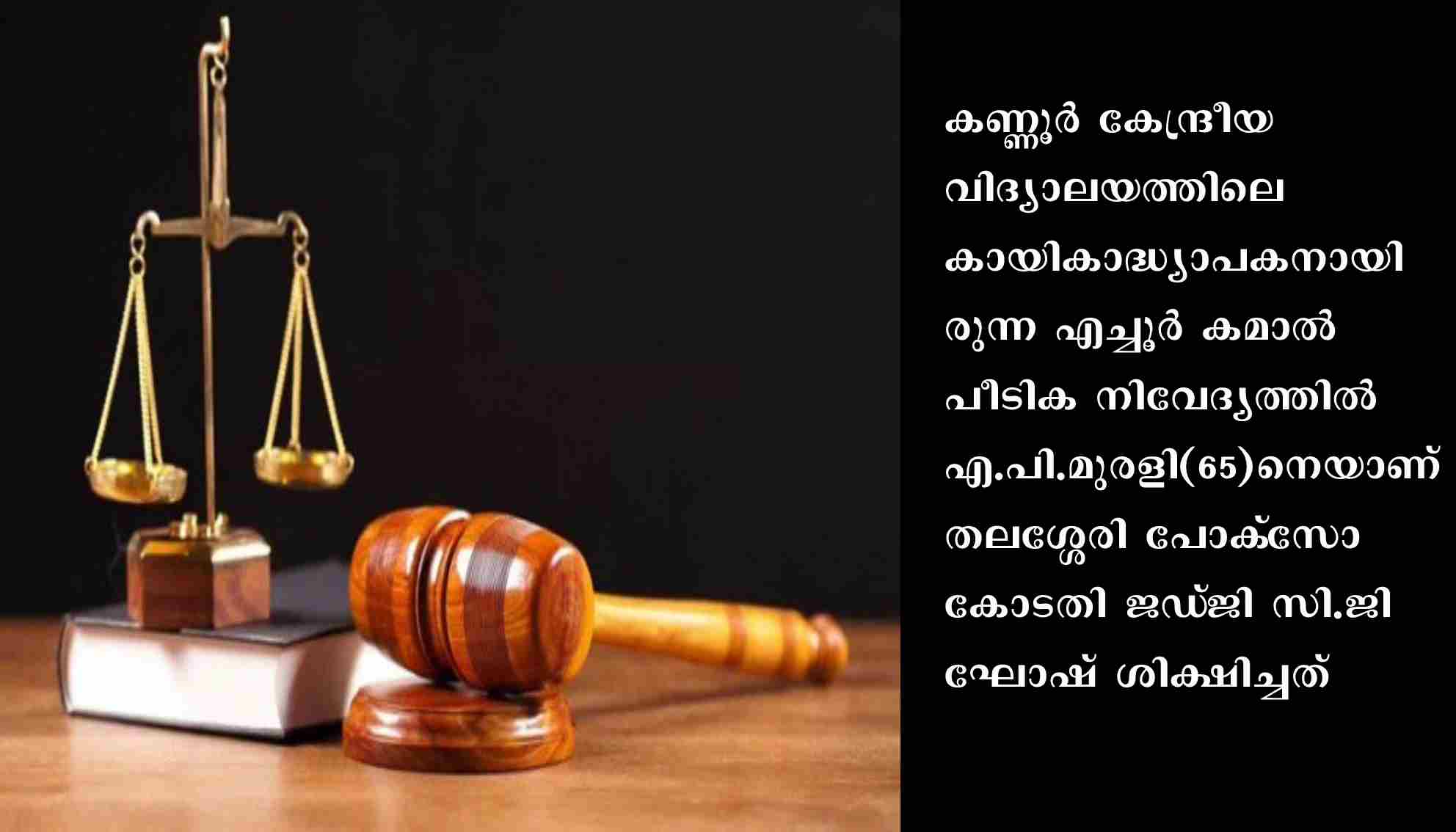 തലശ്ശേരി: വിദ്യാര്ത്ഥിനിയെ ലൈംഗികാതിക്രമത്തിനിരയാക്കിയ കേസില് അദ്ധ്യാപകന് എട്ടുവര്ഷം തടവും 50,000രൂപ പിഴയും ശിക്ഷിച്ചു. കണ്ണൂര് കേന്ദ്രീയ വിദ്യാലയത്തിലെ കായികാദ്ധ്യാപകനായിരുന്ന എച്ചൂര് കമാല് പീടിക നിവേദ്യത്തില് എ.പി.മുരളി(65)നെയാണ് തലശ്ശേരി പോക്സോ കോടതി ജഡ്ജി സി.ജി ഘോഷ് ശിക്ഷിച്ചത്.